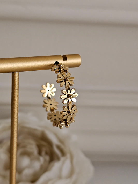 PELINA FLOWER HOOP EARRINGS