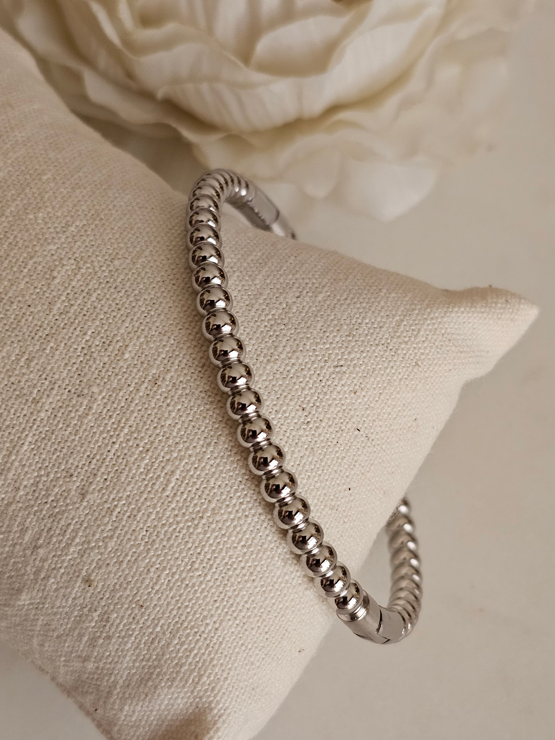 Bracelet Size: Inner diameter 6 cm. Has a clasp that opens for an easy effortless fit.