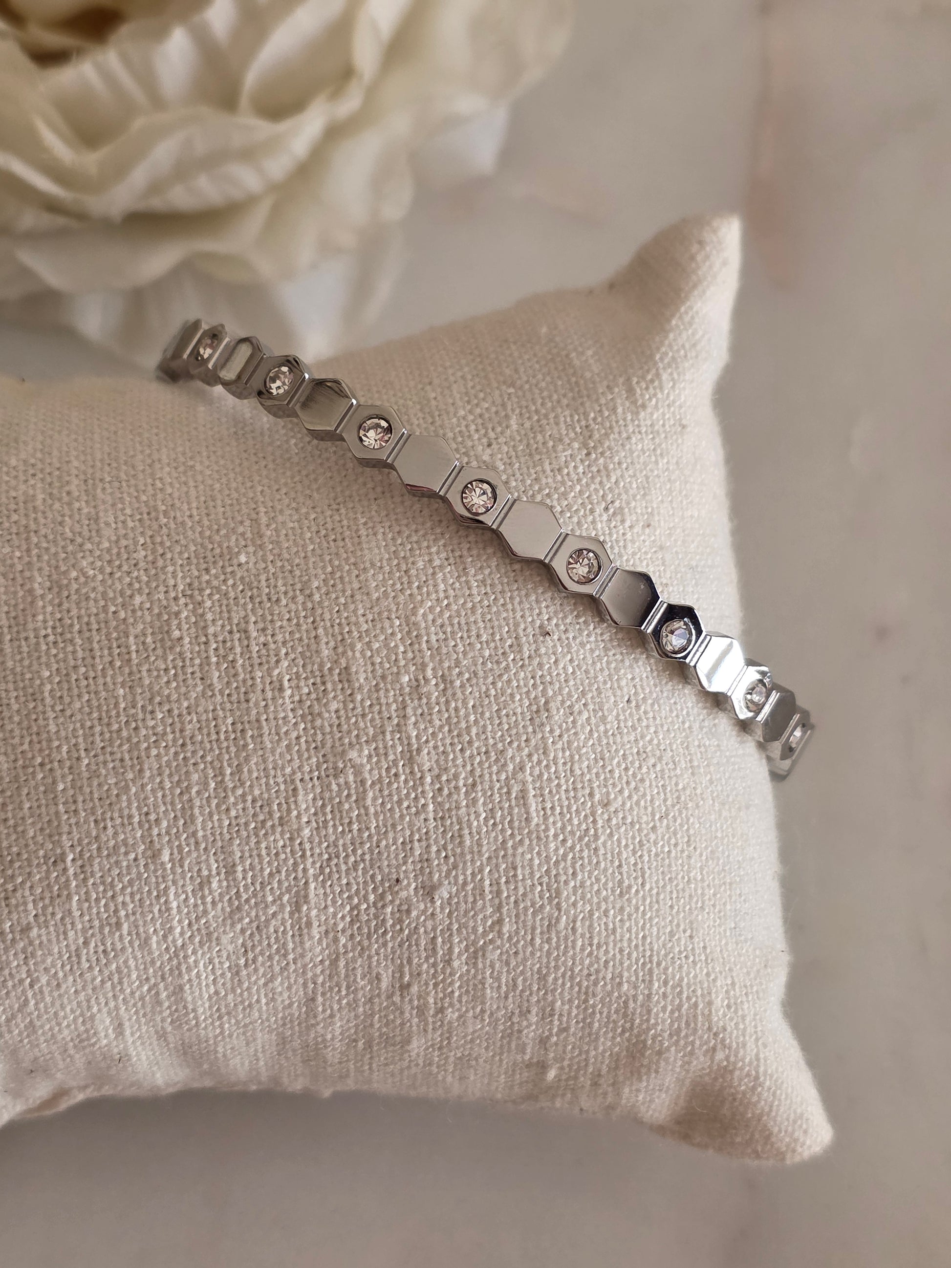 Bangle Size: Inner diameter 6 cm. Has a clasp that opens for an easy effortless fit.
