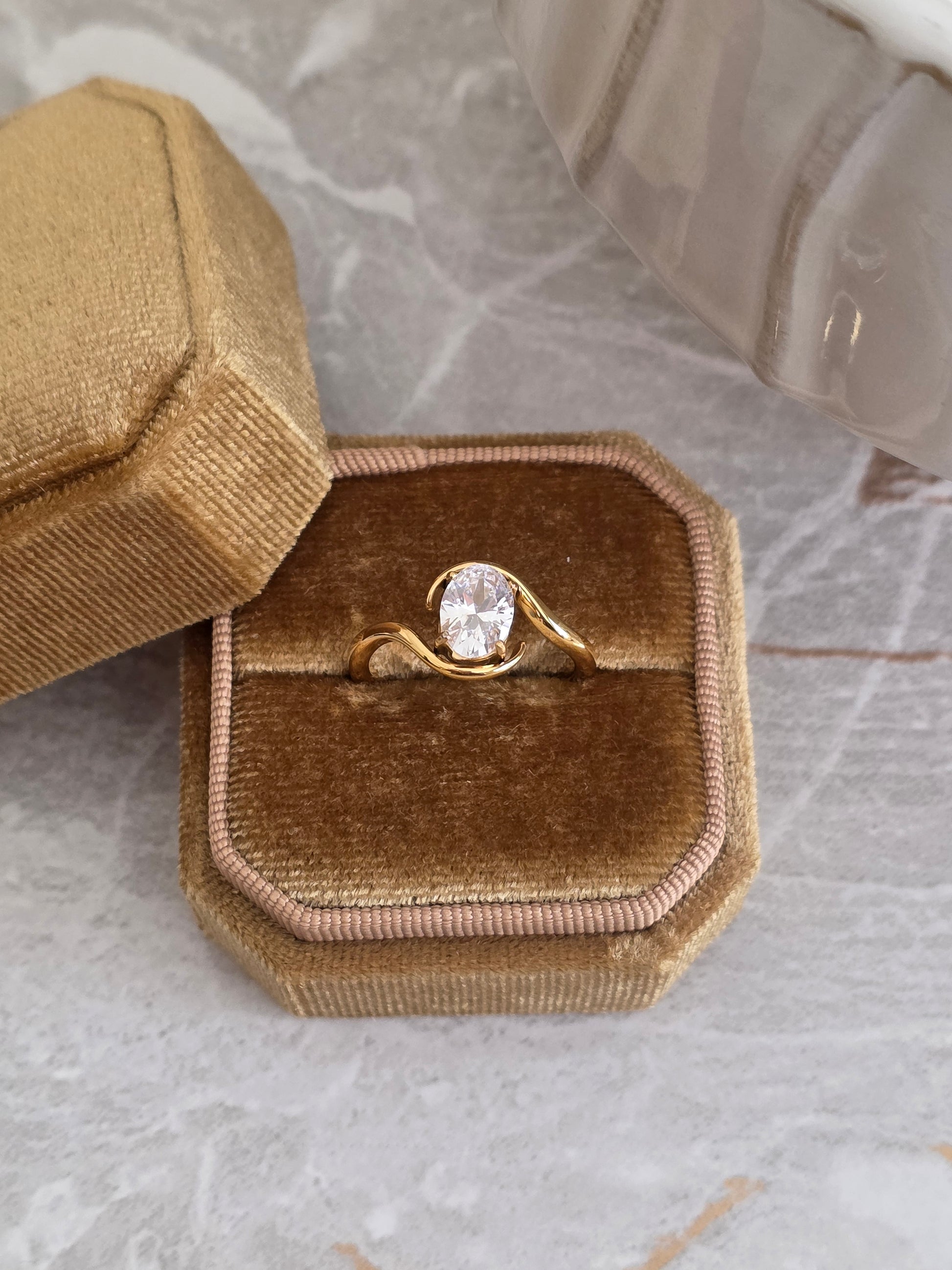 Elegant and timeless, our Gold Oval Cubic Zirconia Ring features a sparkling oval-cut stone delicately cradled by a sleek, wave-inspired band. The minimalist yet graceful design makes it perfect for both everyday wear and special occasions.