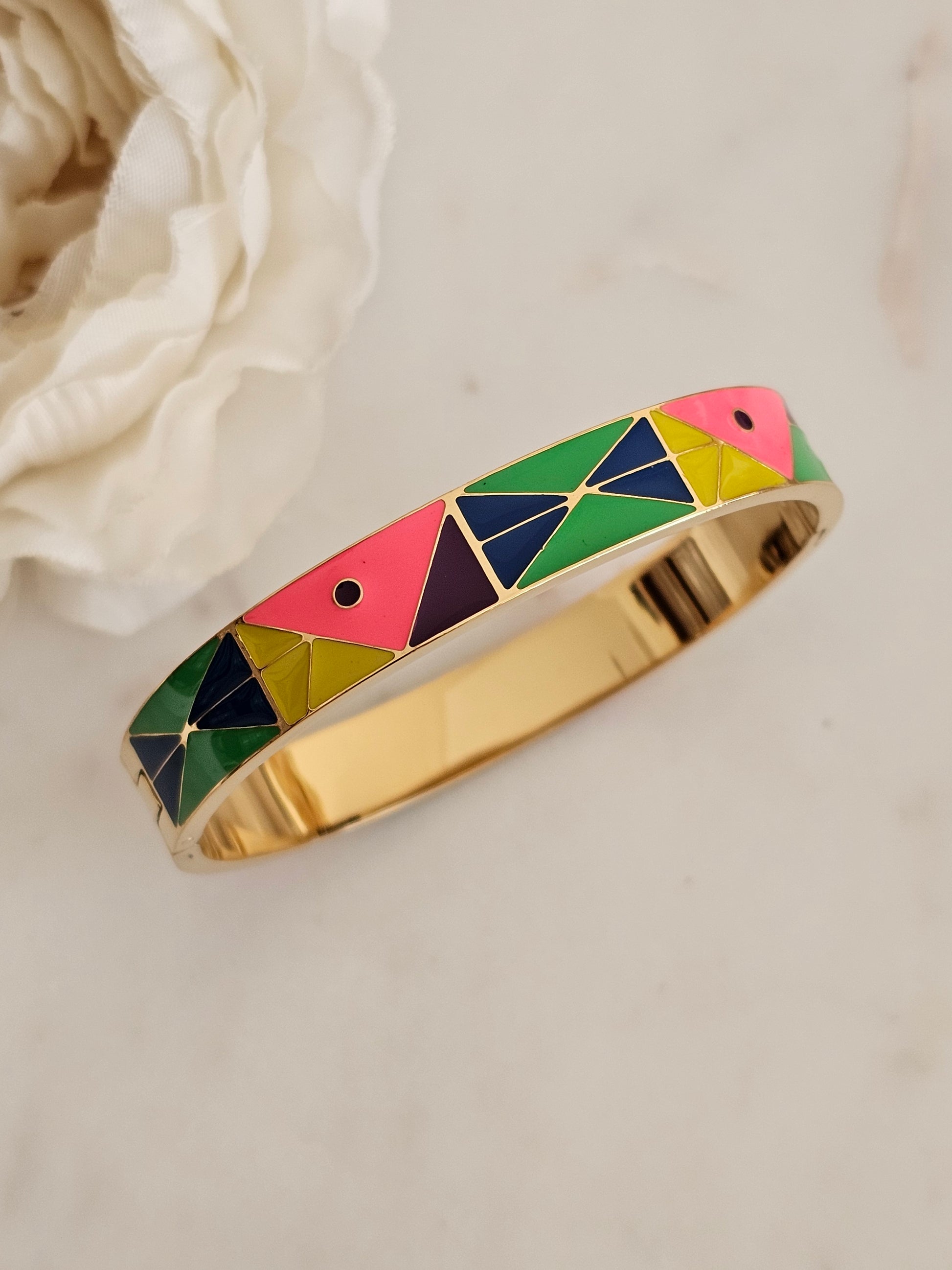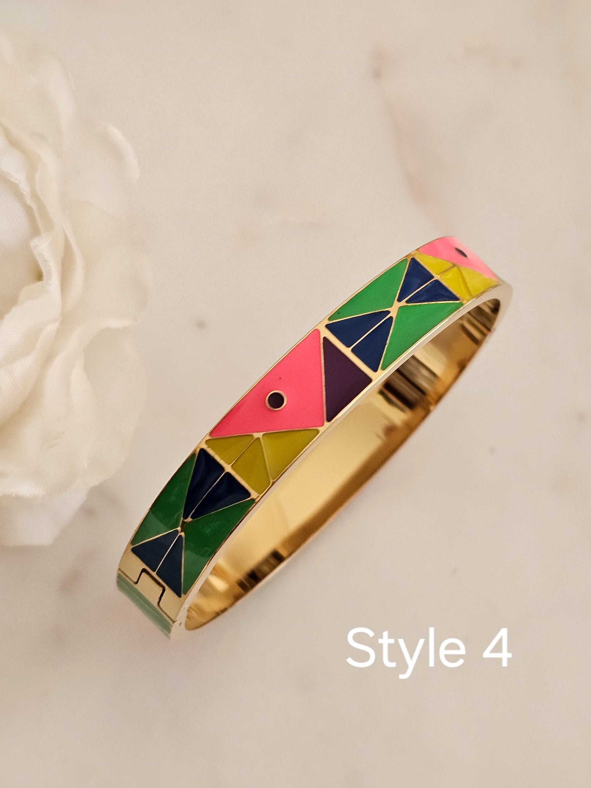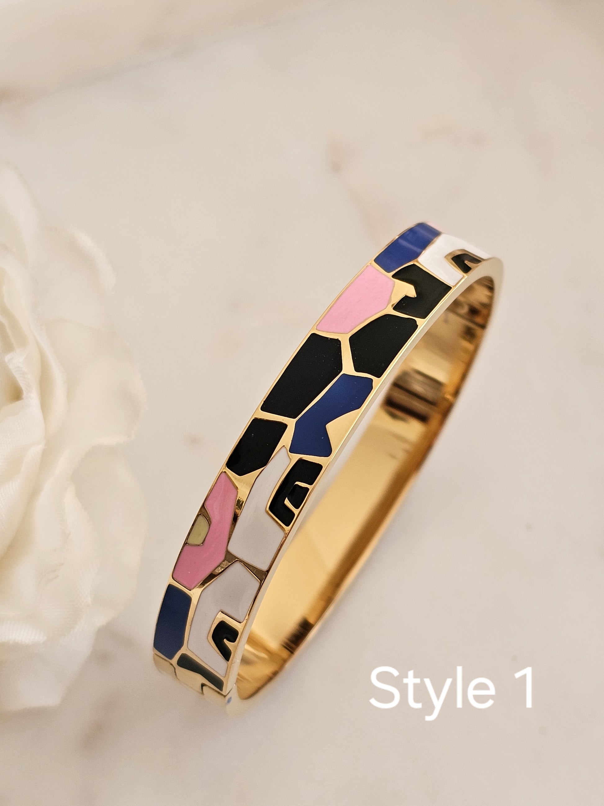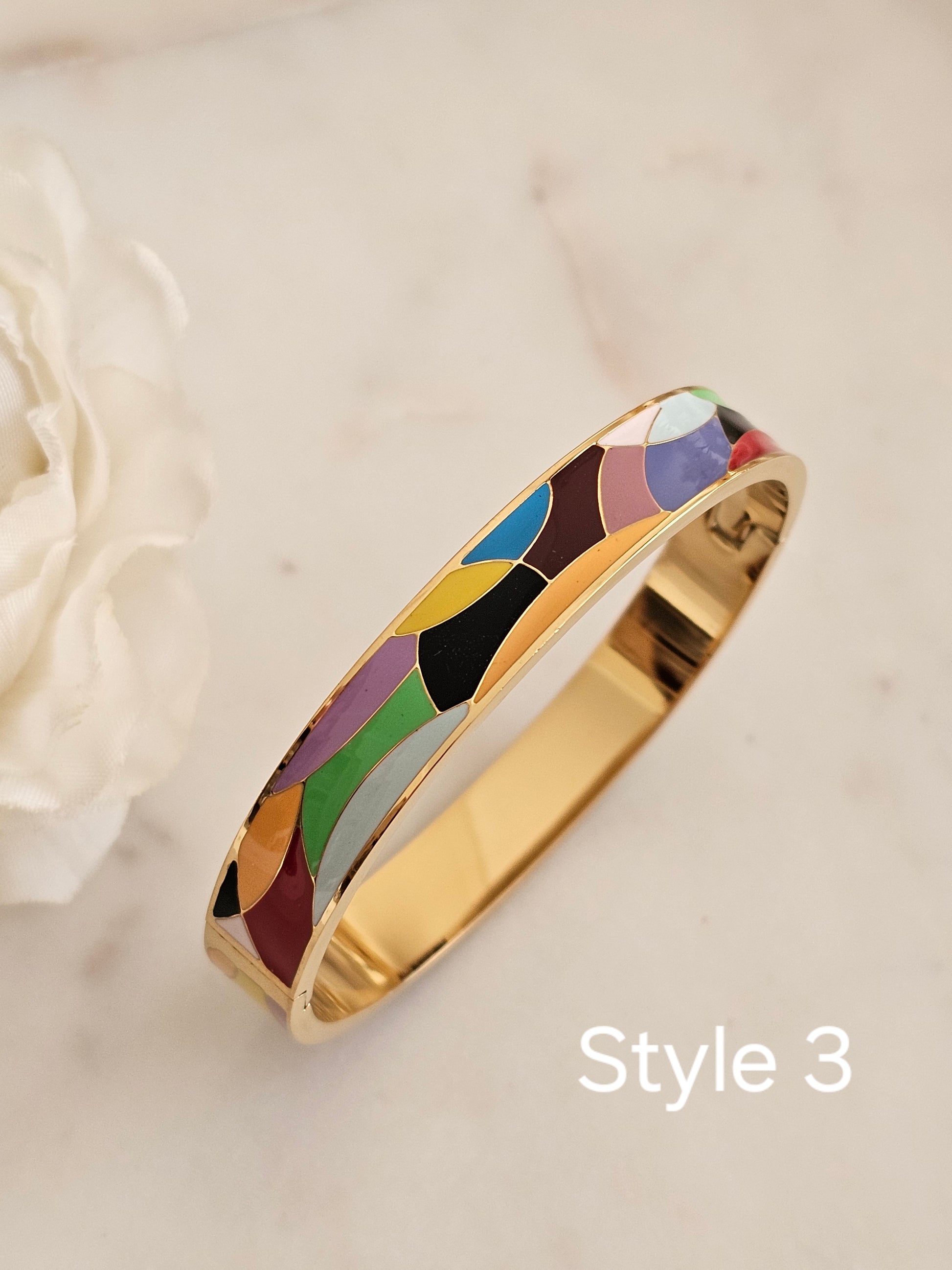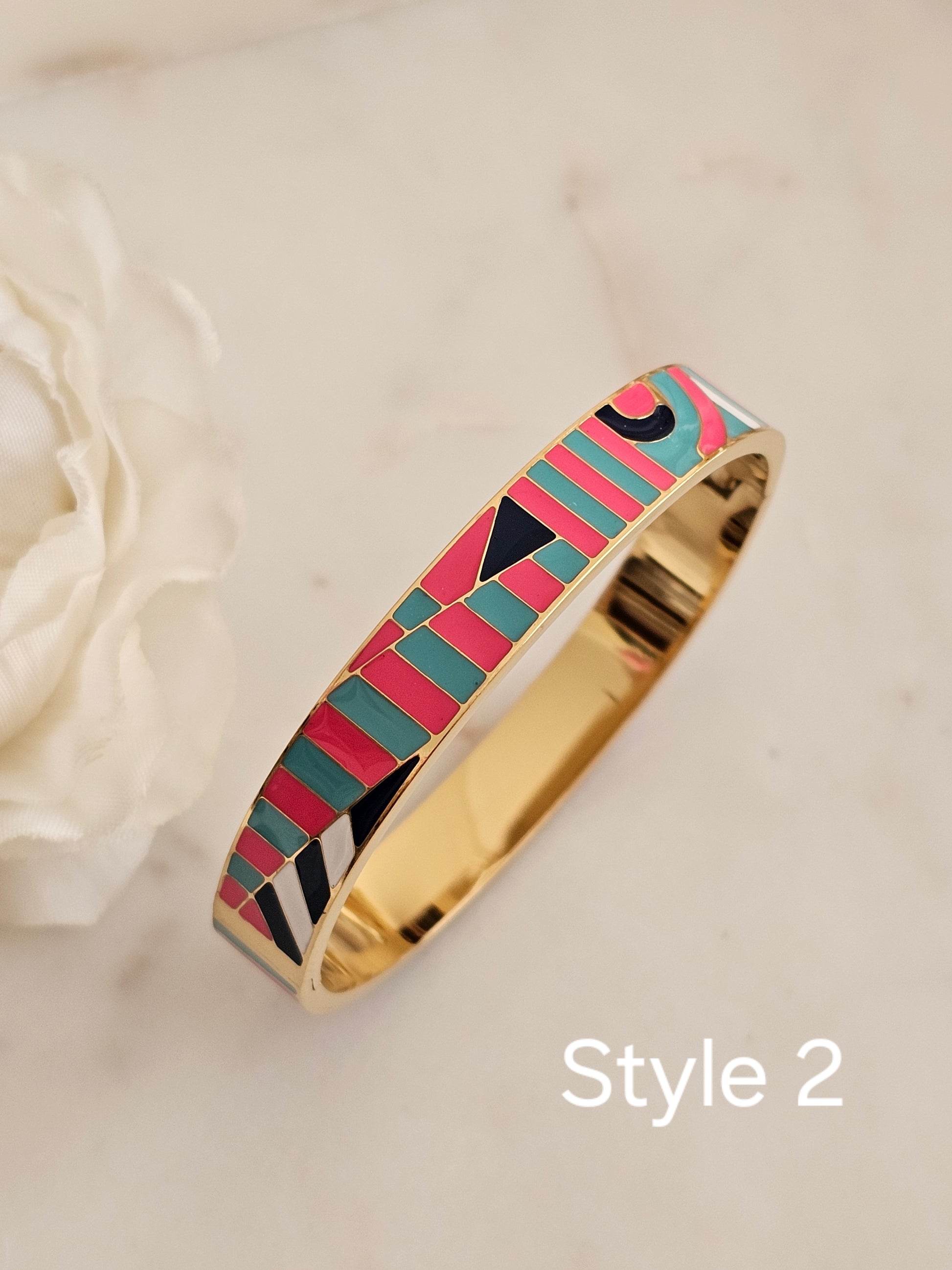 Bangle Size: Inner diameter 6 cm. Has a clasp that opens for an easy effortless fit.
