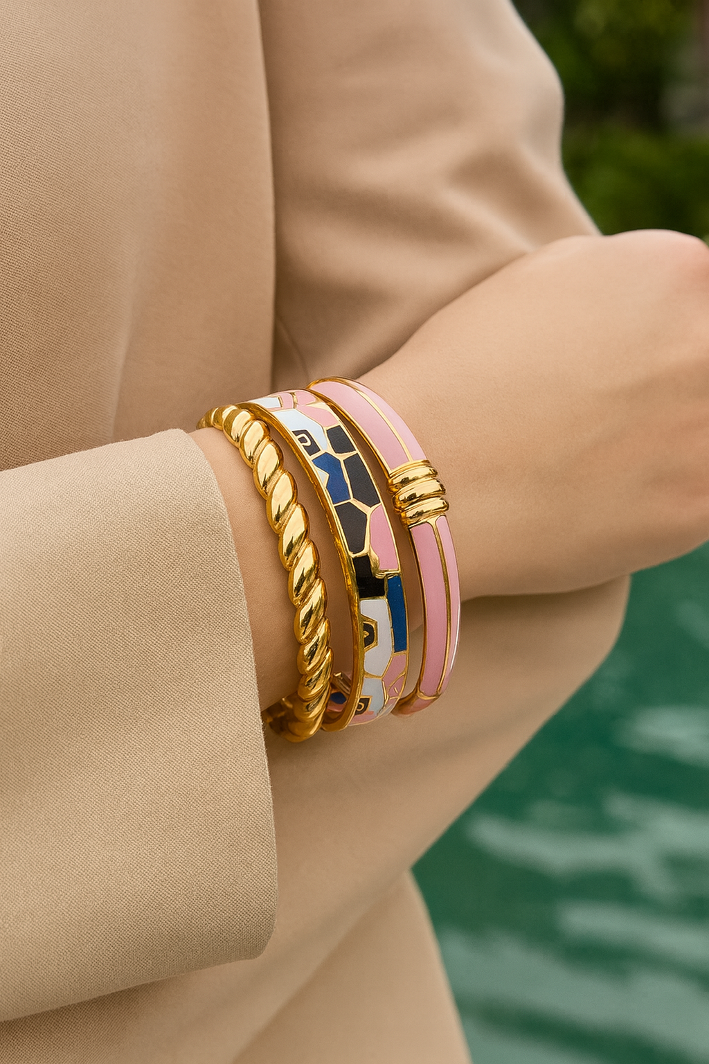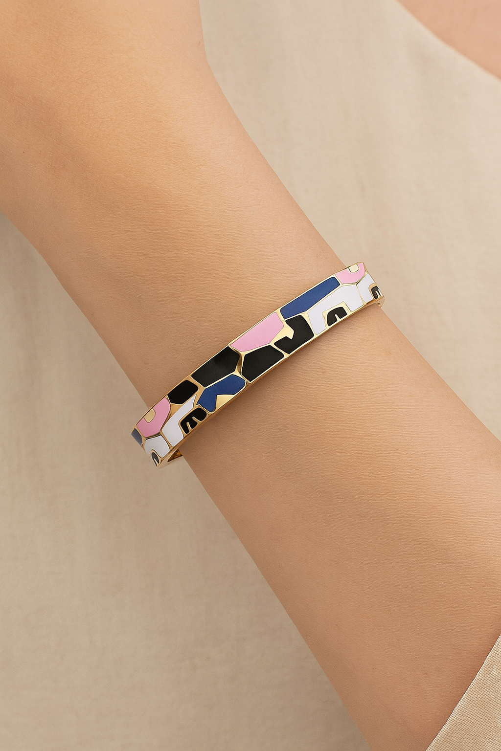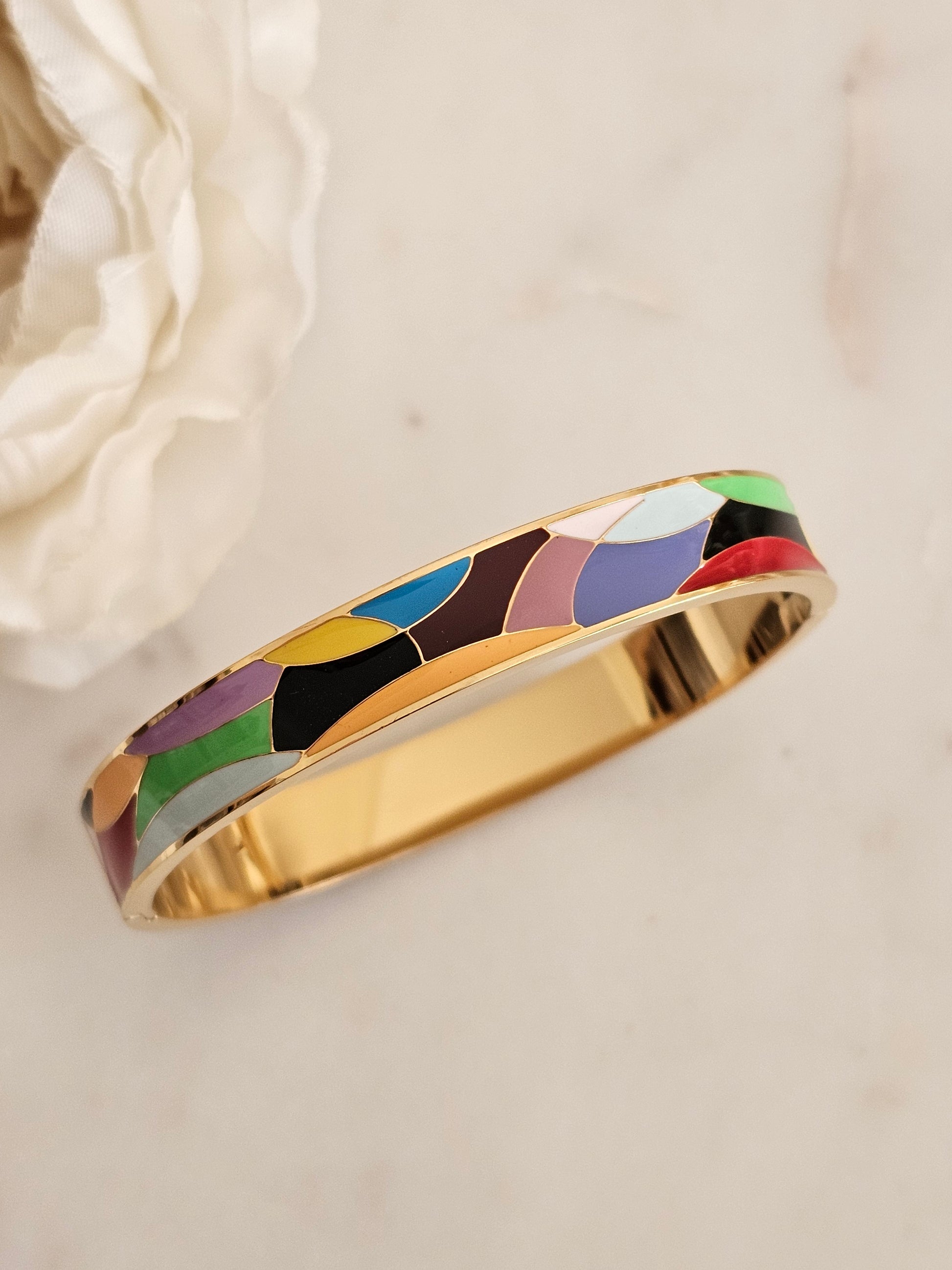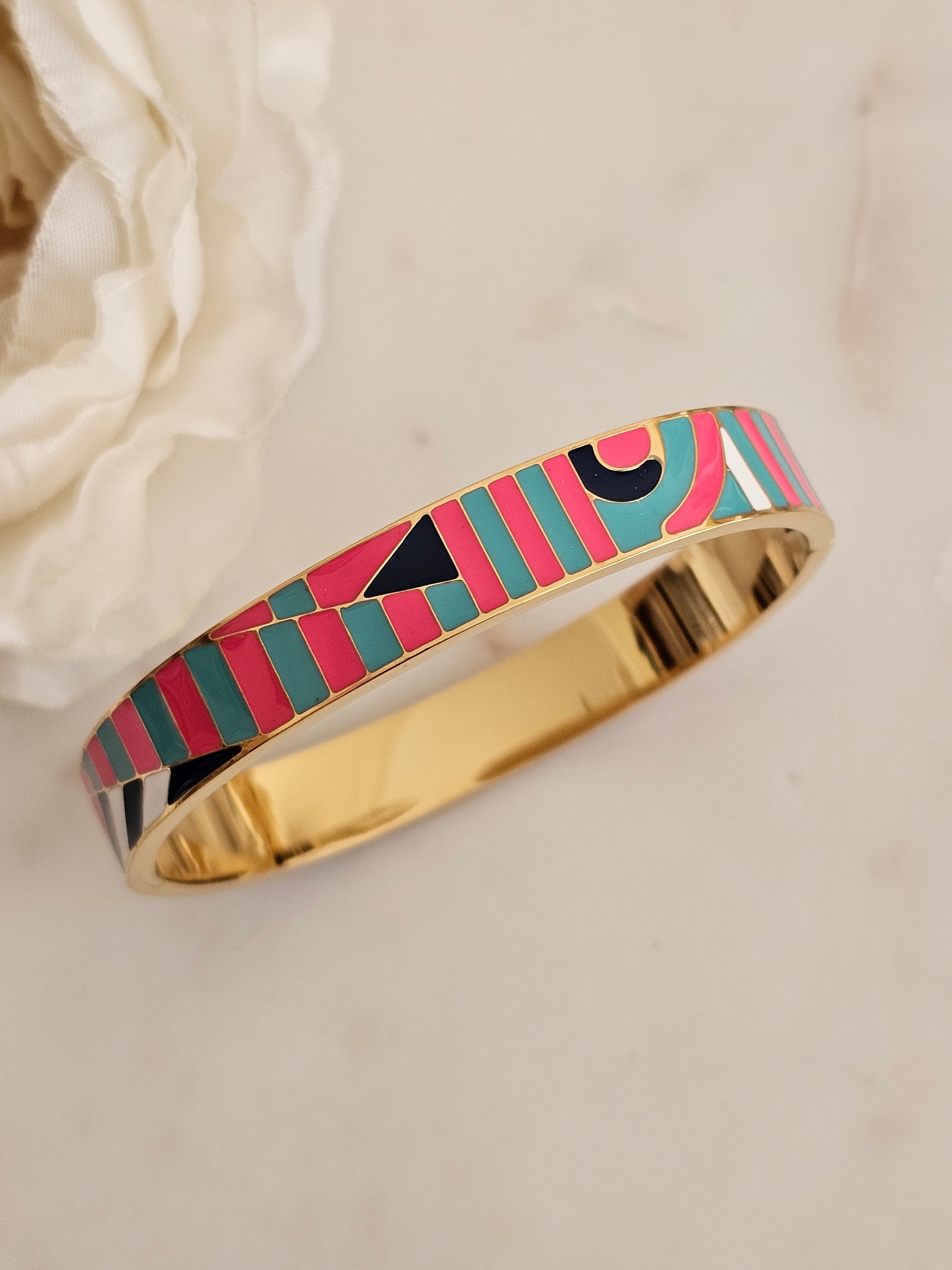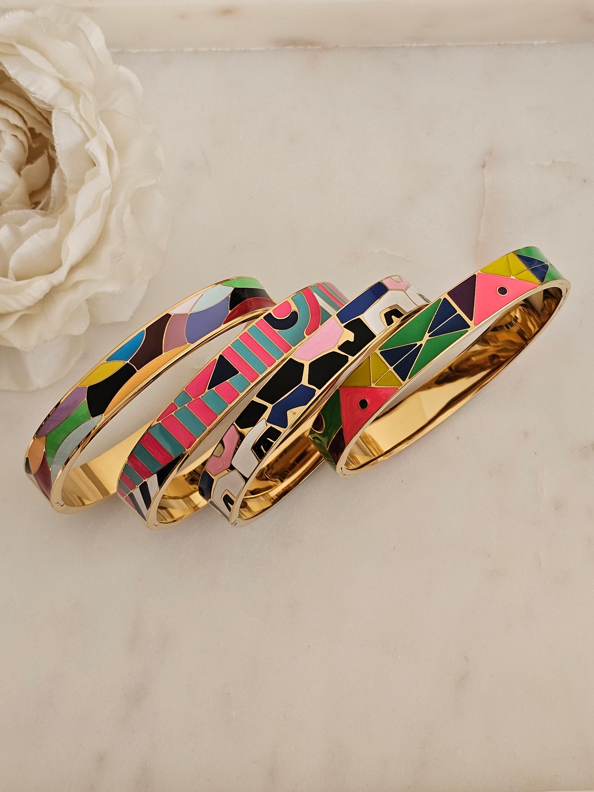 Bangle Size: Inner diameter 6 cm. Has a clasp that opens for an easy effortless fit.