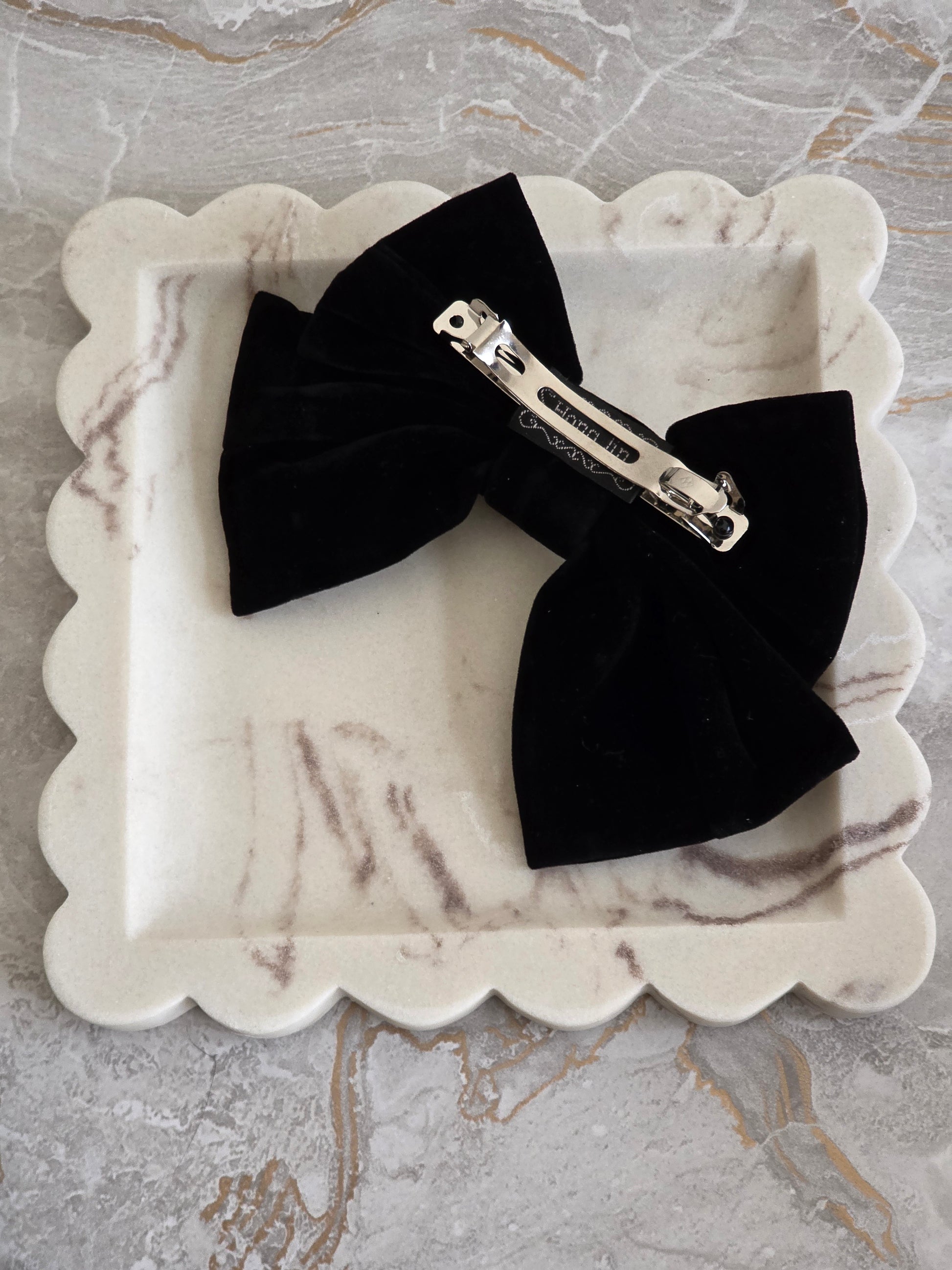 Classic Black Velvet Bow Hair Clip with Pearl Accent