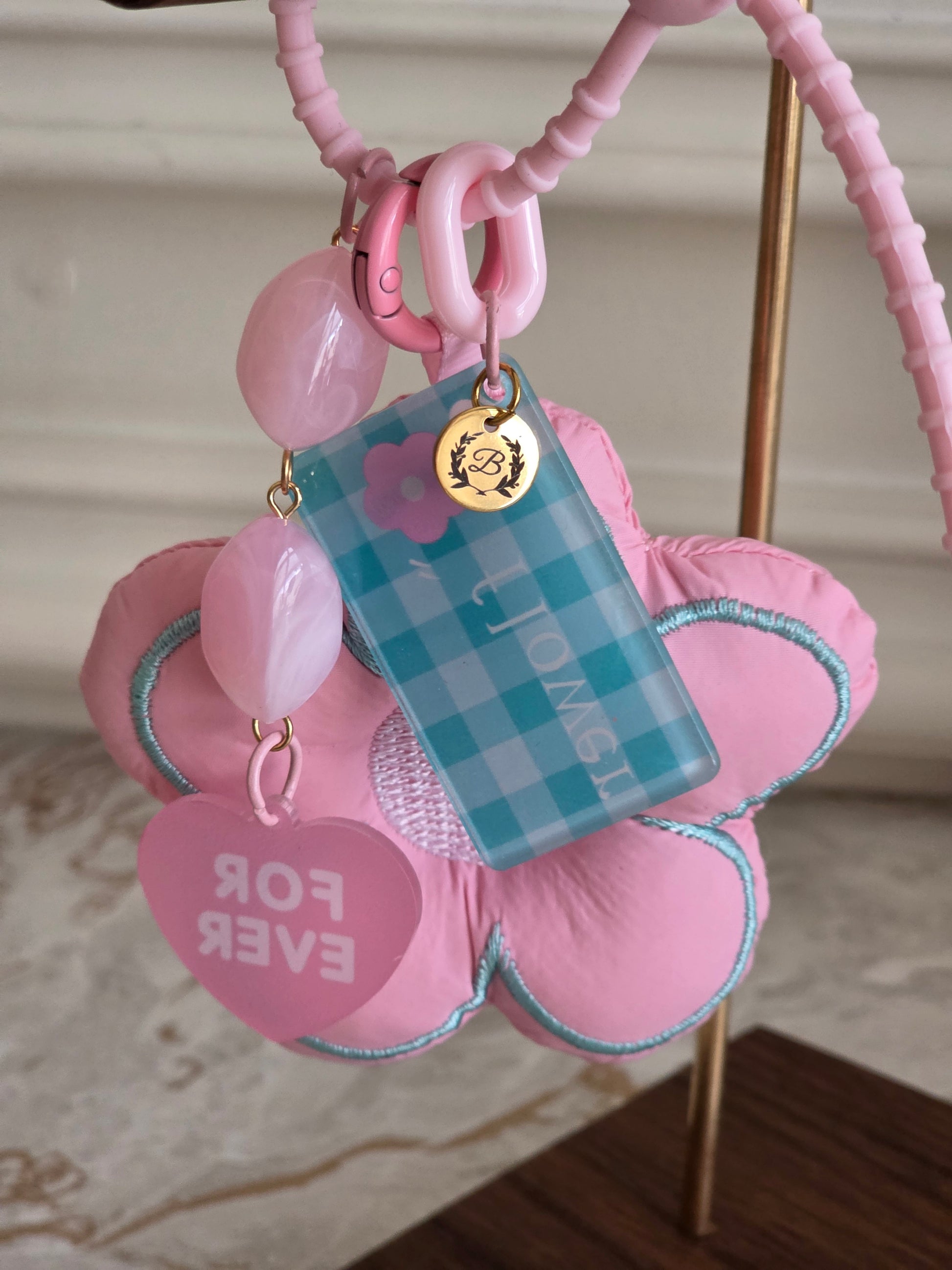 Cute Charms: Comes with a pink heart charm that says LOVE and a blue gingham FLOWER tag for extra cuteness.