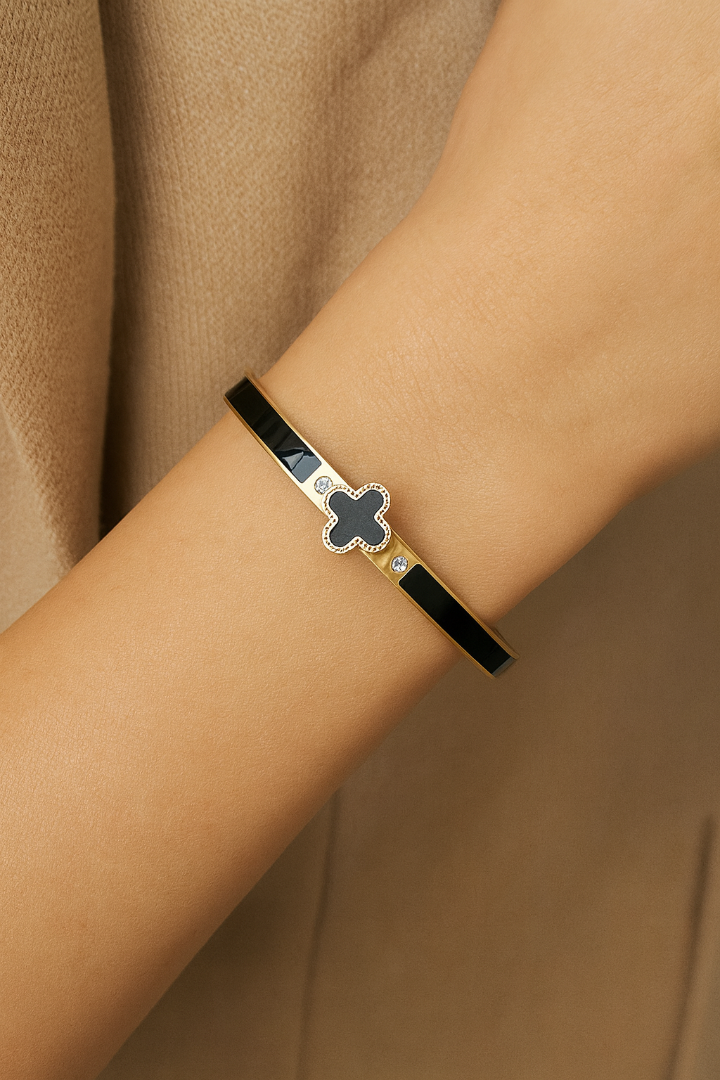 Bangle Size: Inner diameter 6 cm. Has a clasp that opens for an easy effortless fit.