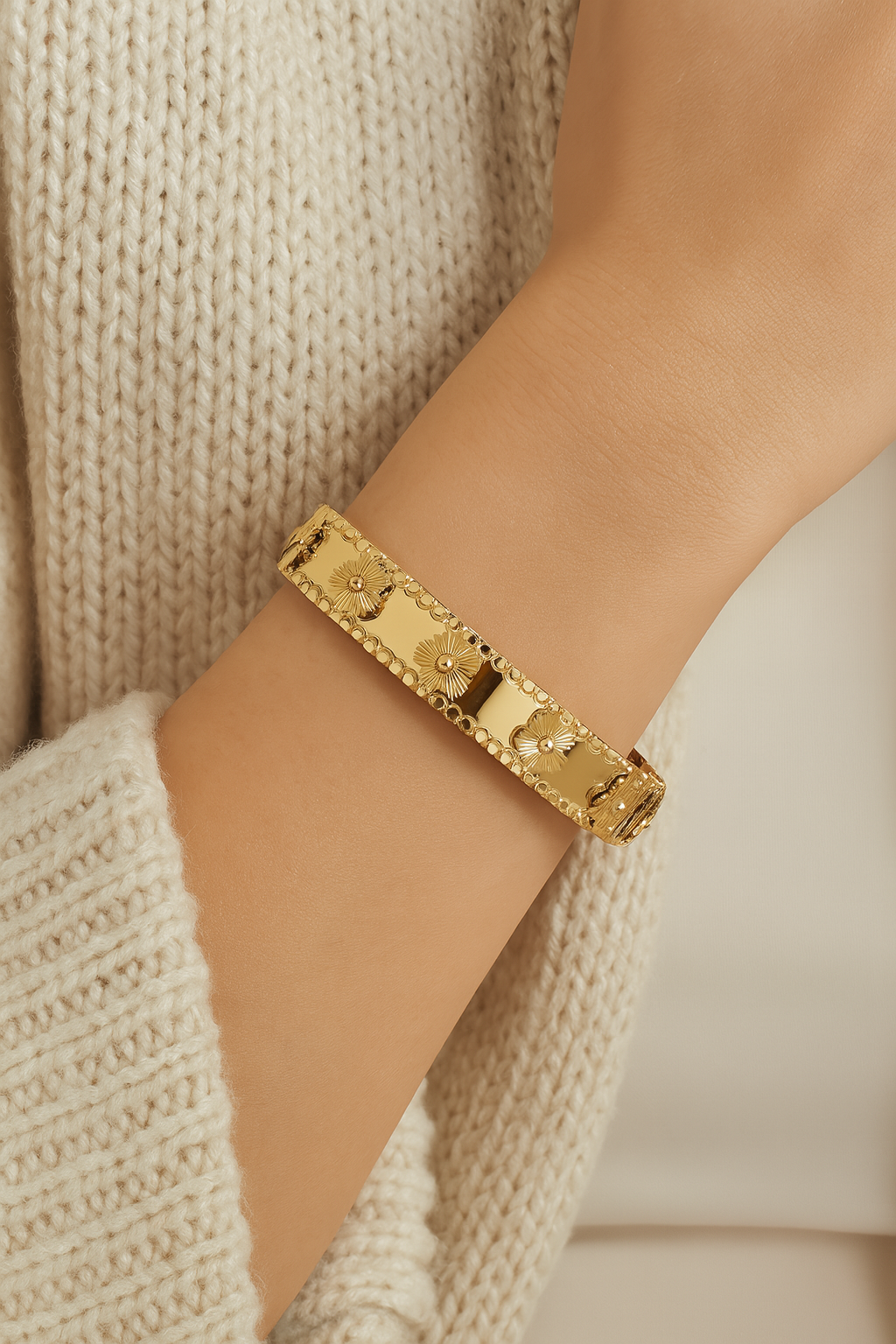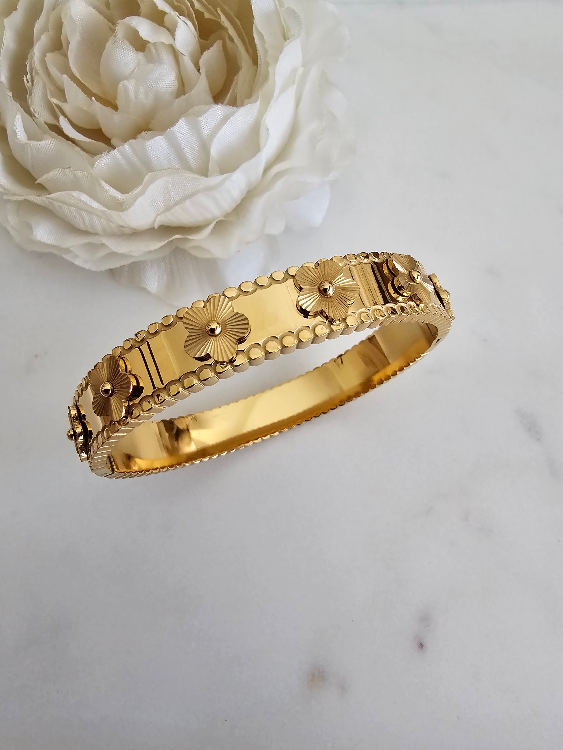 Bangle length: Inner diameter is 6 cm. Has a clasp that opens for a easy effortless fit.