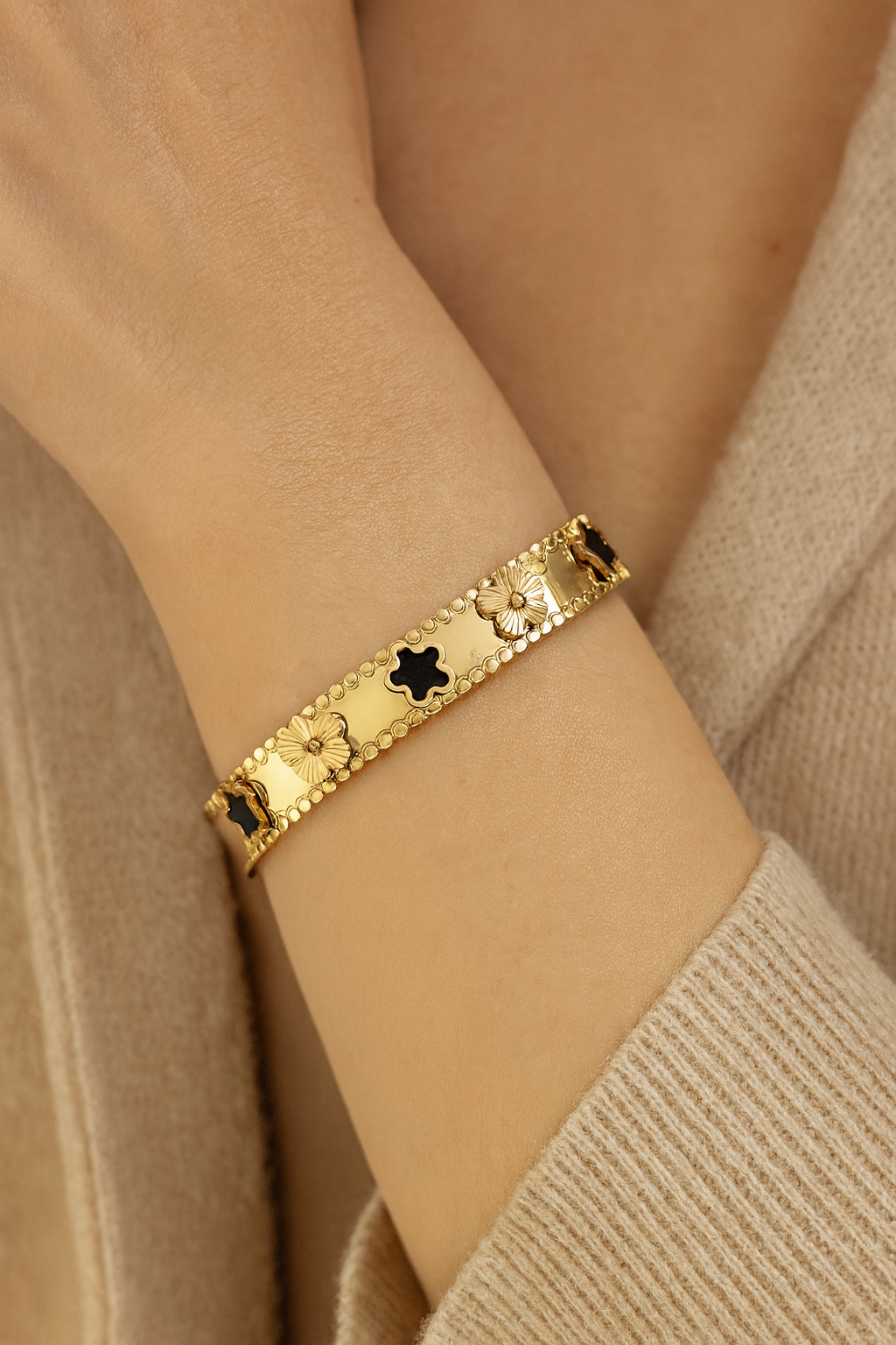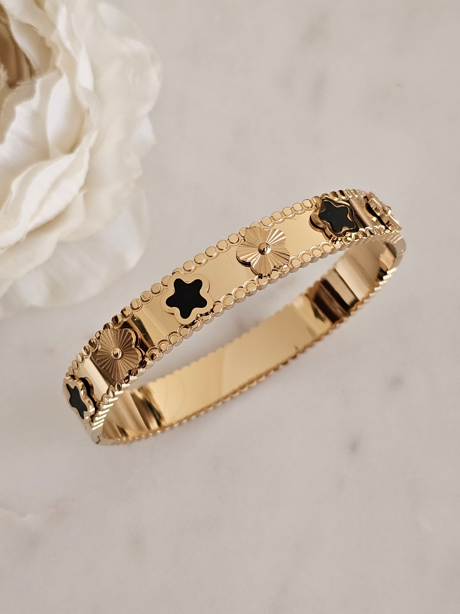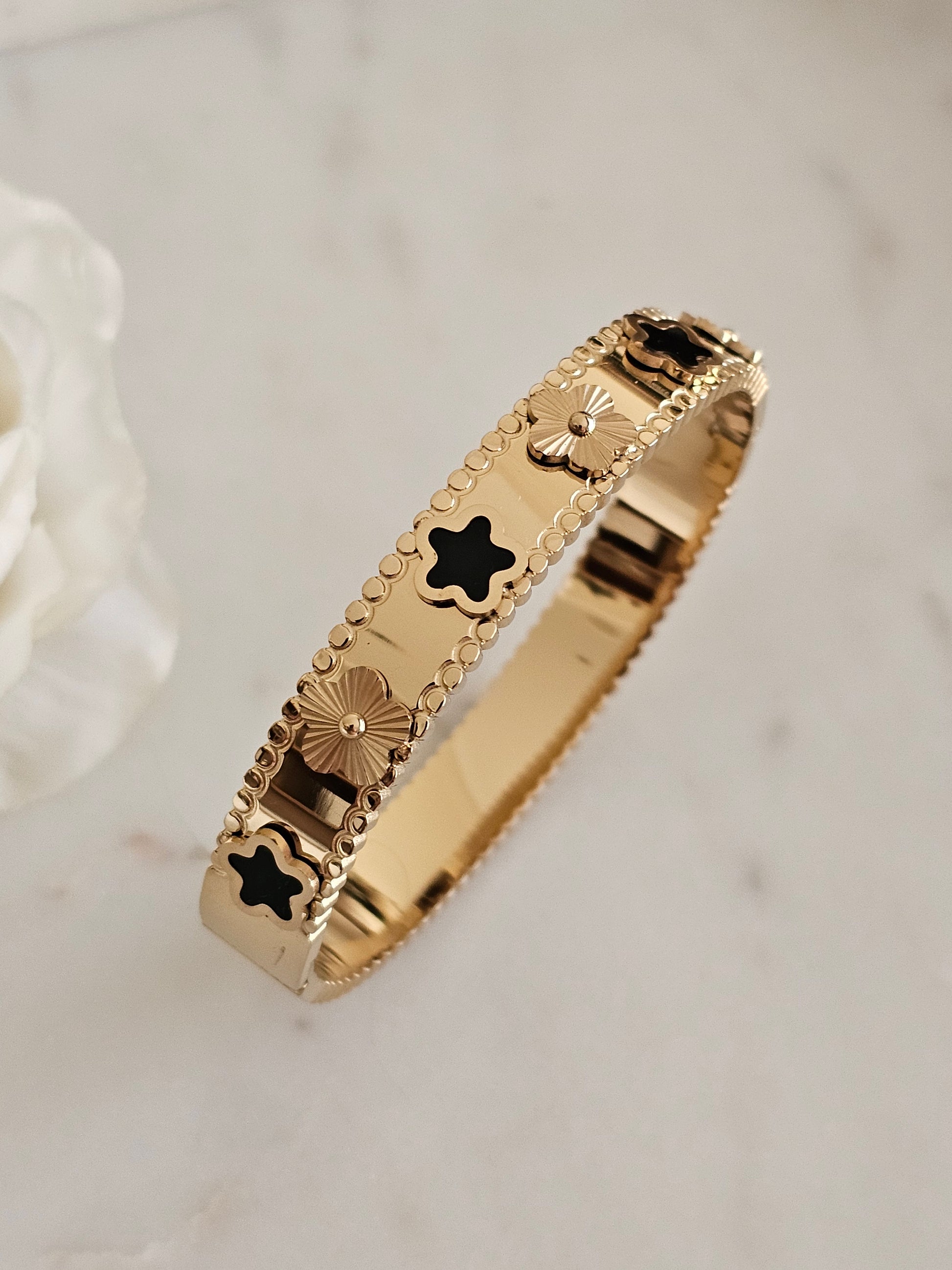 Bangle Size: Inner diameter 6 cm. Has a clasp that opens for an easy effortless fit.