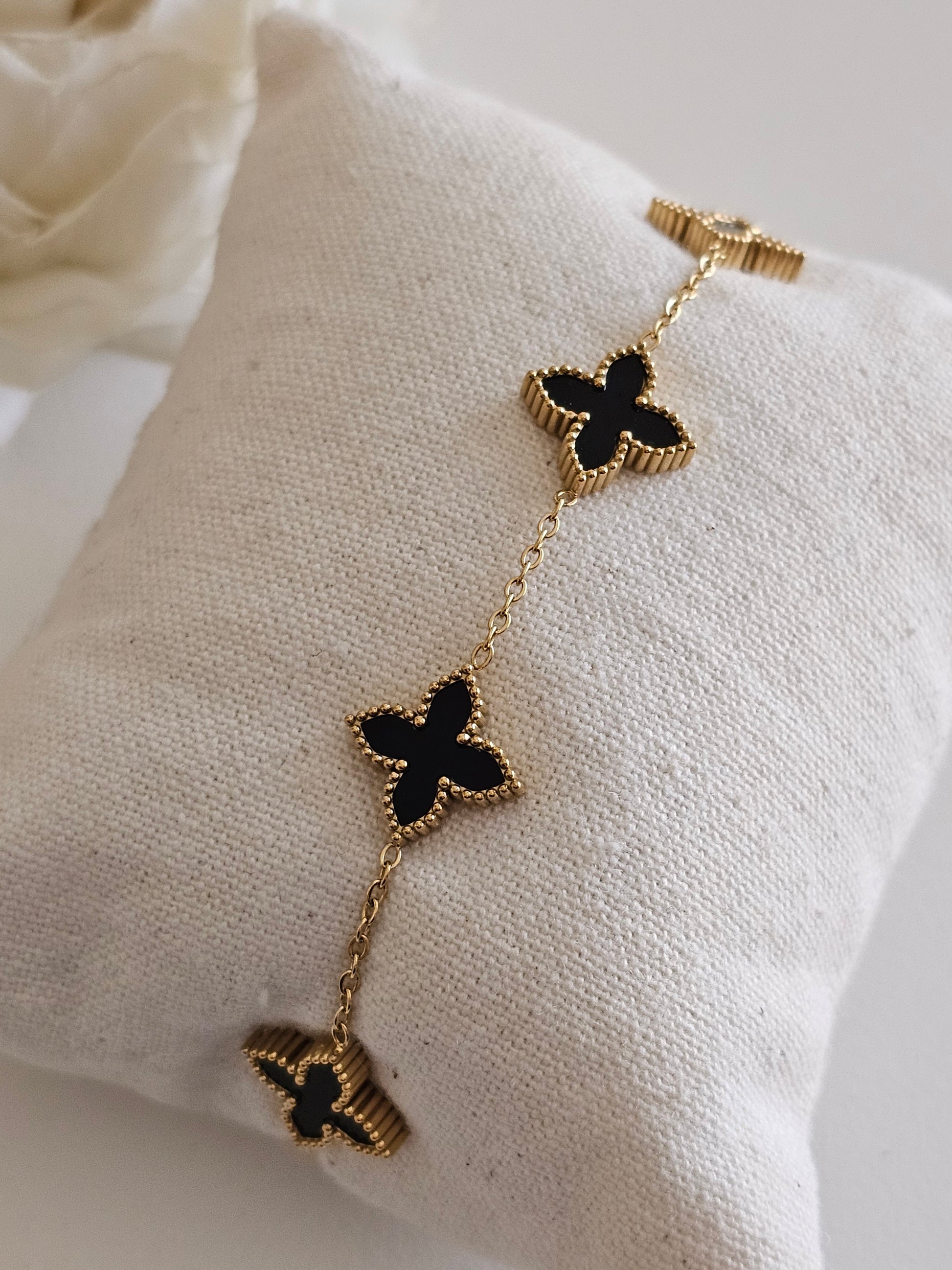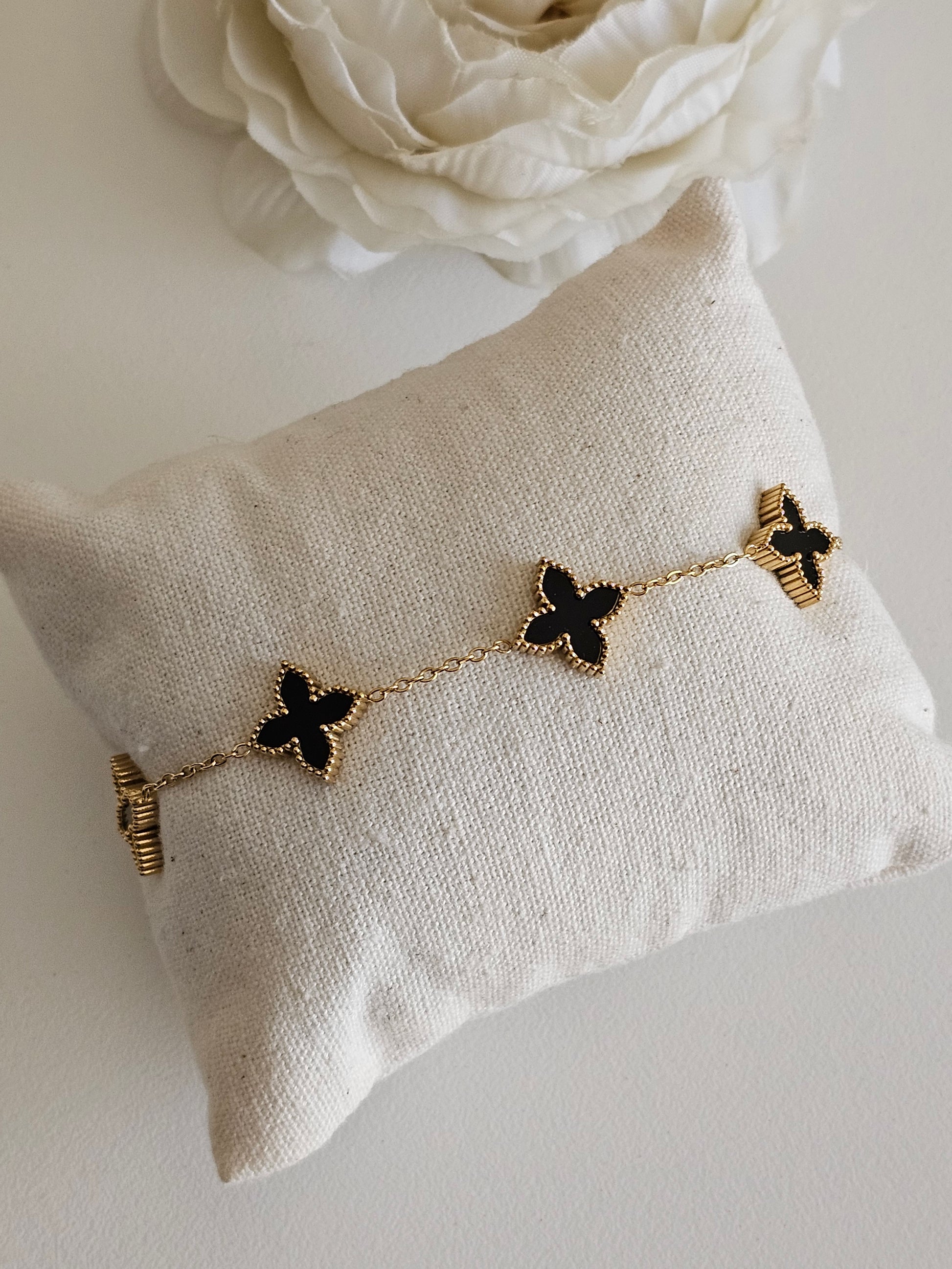 Double sided clover. One side is black and the other side is white. Can be worn both ways.