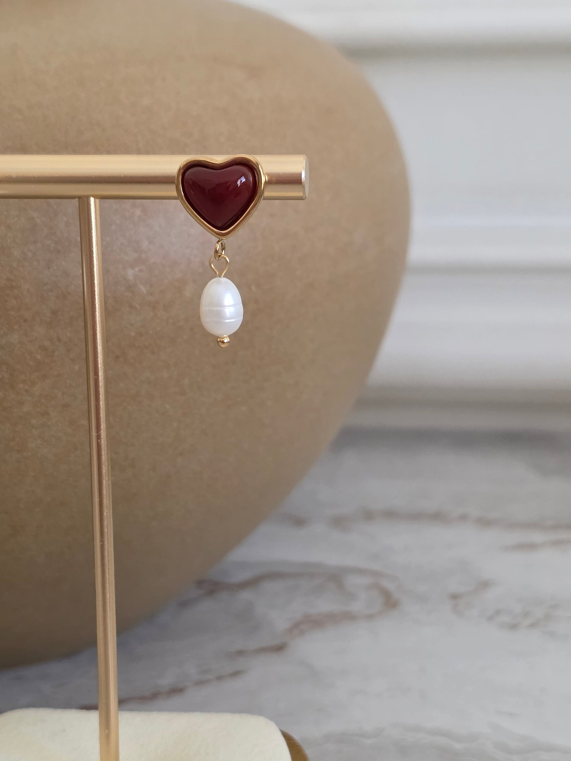 Charming and elegant, our Red Heart Pearl Drop Earrings blend romance with timeless sophistication. Featuring a deep red enamel heart stud paired with a delicate pearl drop, these earrings add the perfect touch of graceful femininity to any look.