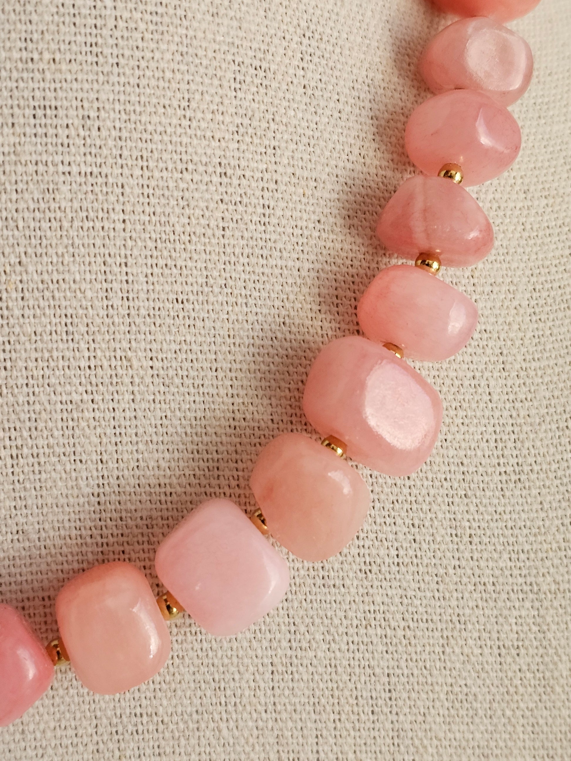 Main material: 18k gold plated, high quality stainless steel. Pink natural stone.