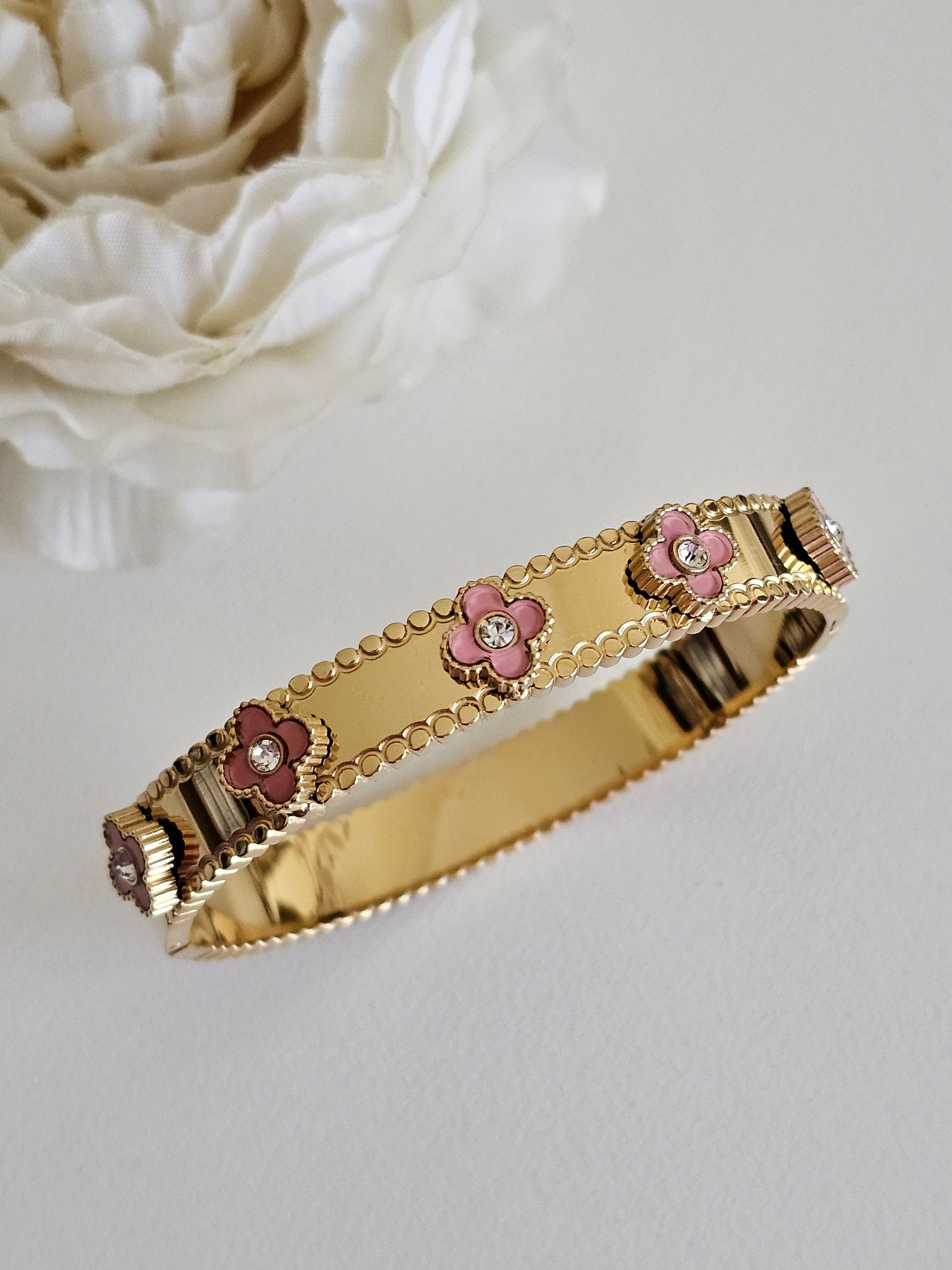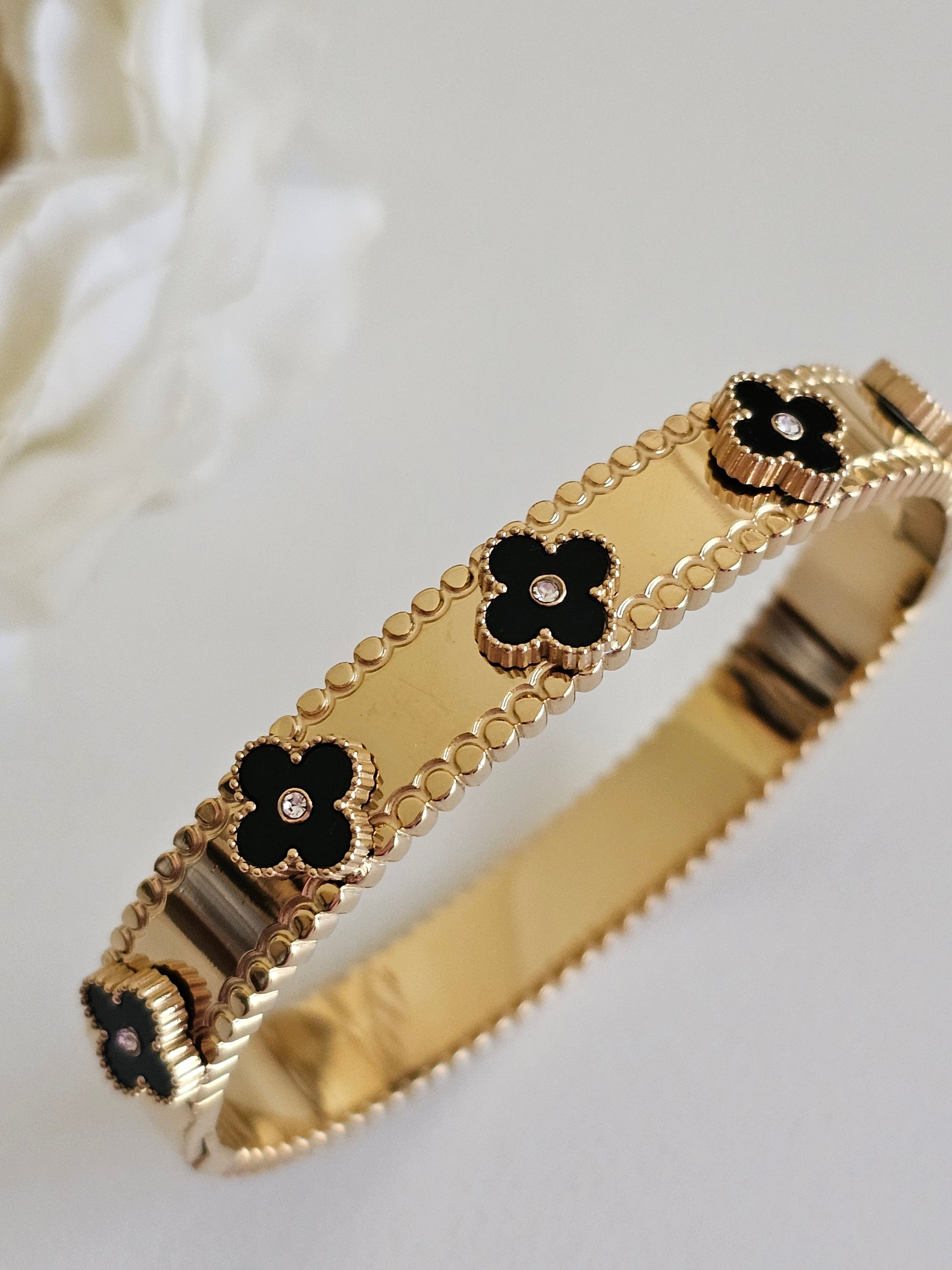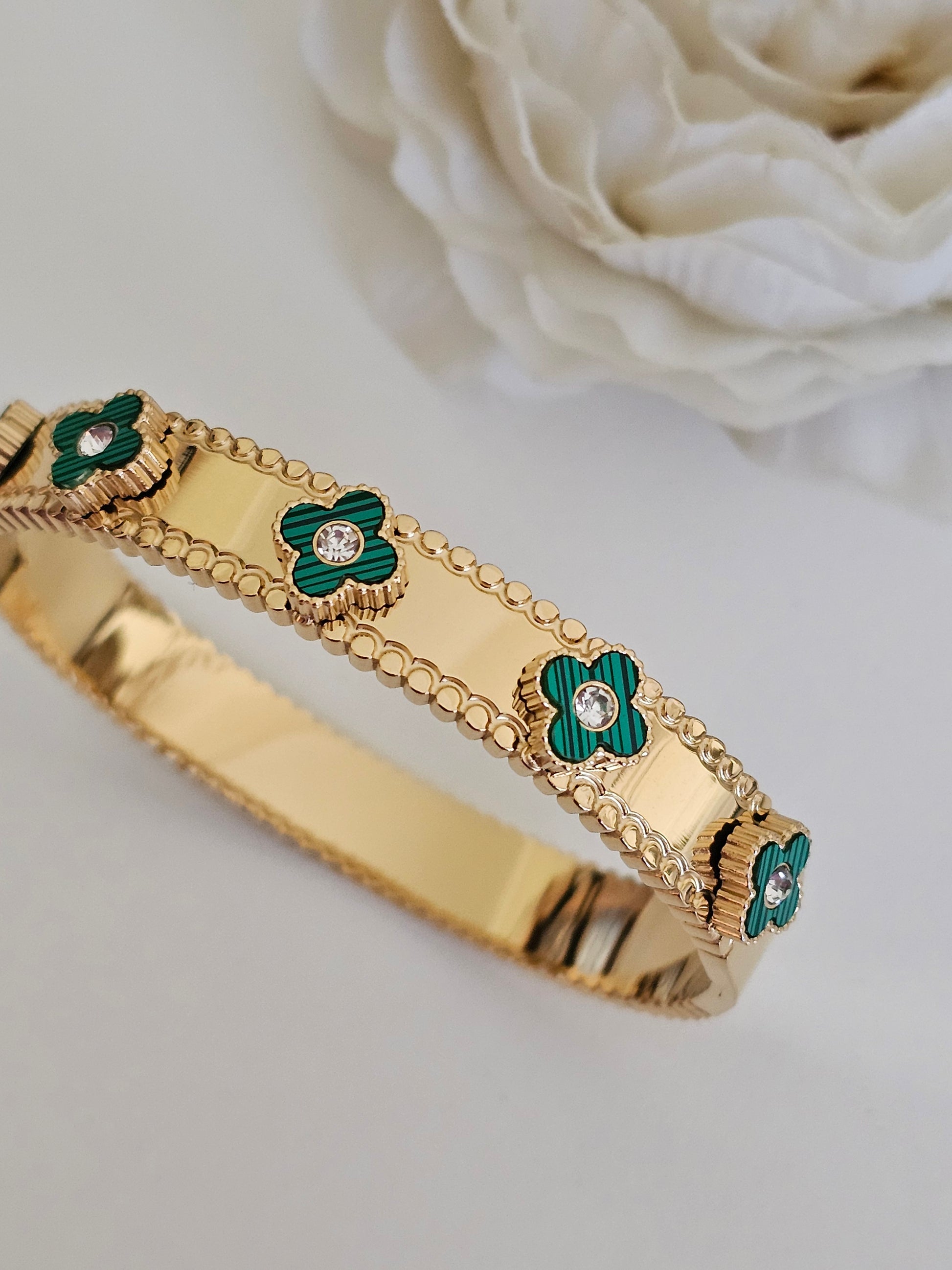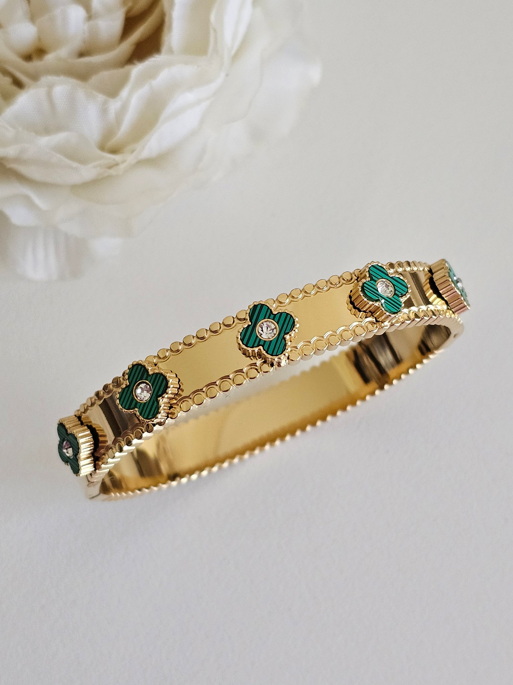 Bangle Size: Inner diameter is 6 cm. Has a clasp that opens for a easy effortless fit.