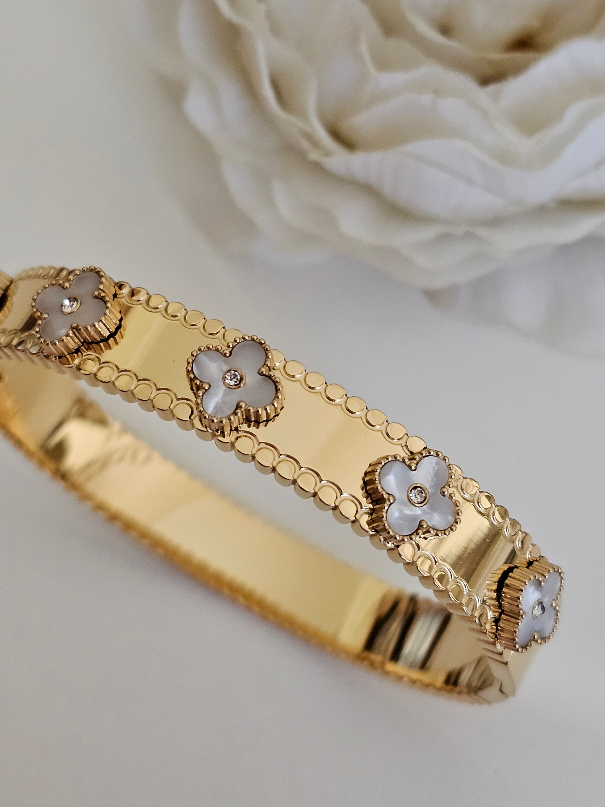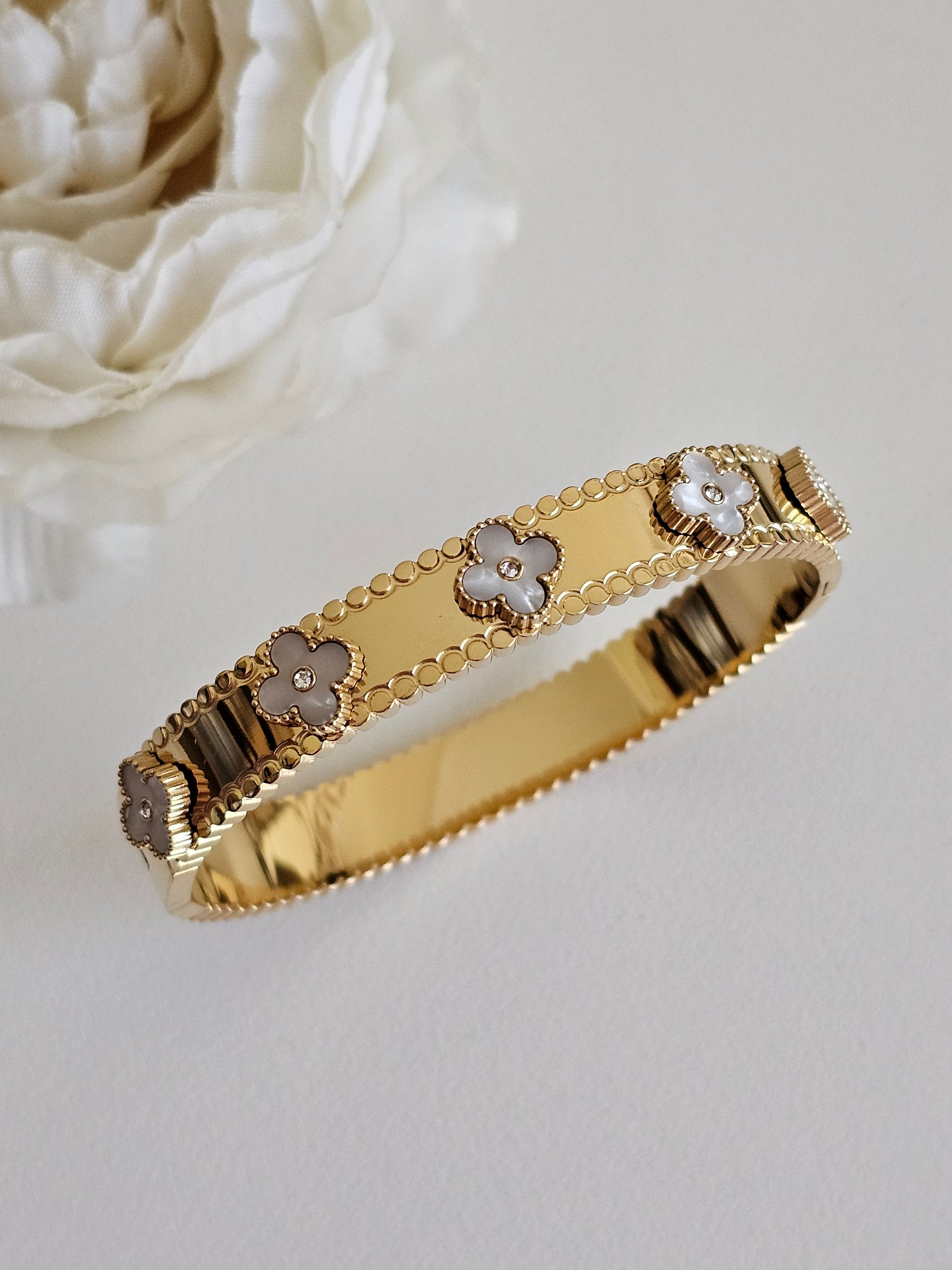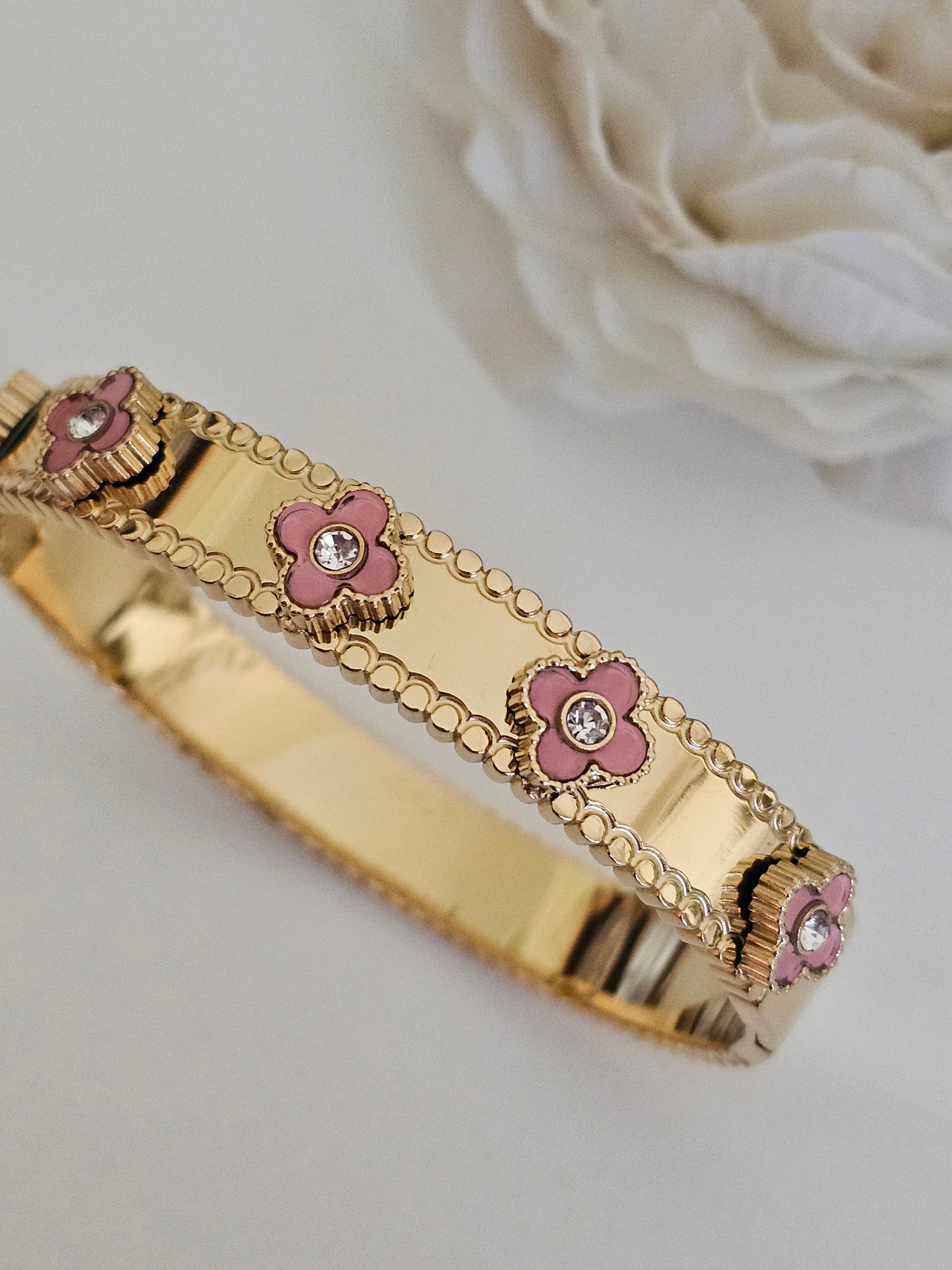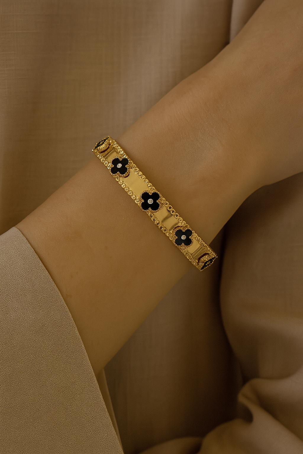 Bangle Size: Inner diameter is 6 cm. Has a clasp that opens for a easy effortless fit.