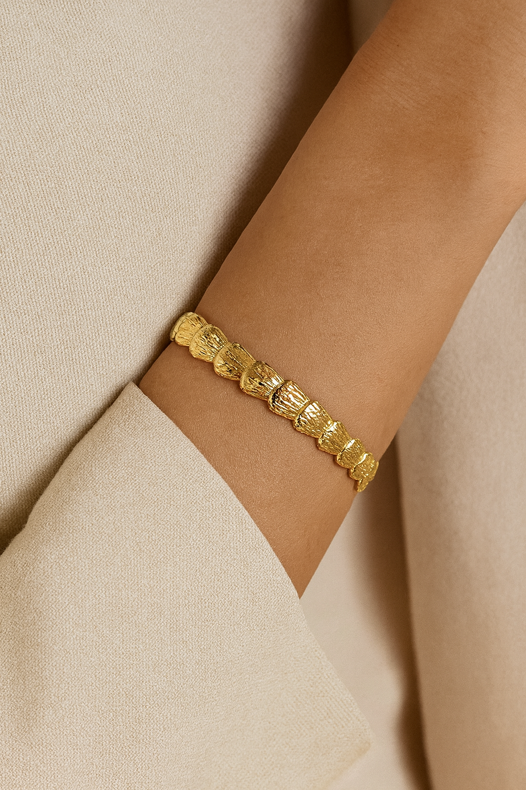 Bangle Size: Inner diameter 6 cm, open cuff, adjustable to fit wrist comfortably.