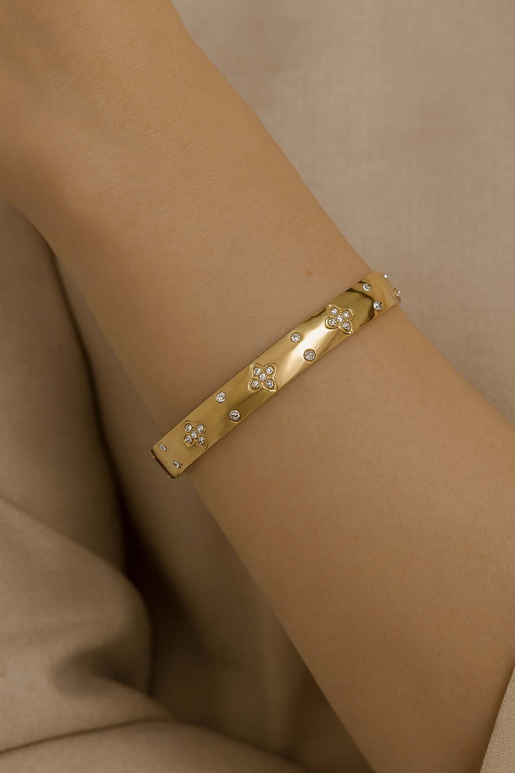 Bangle Size: Inner diameter 6 cm. Has a clasp that opens for an easy effortless fit.