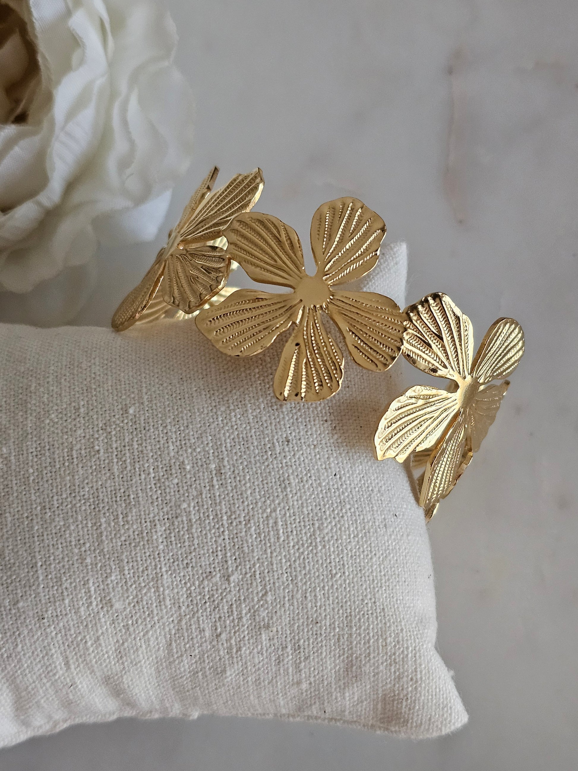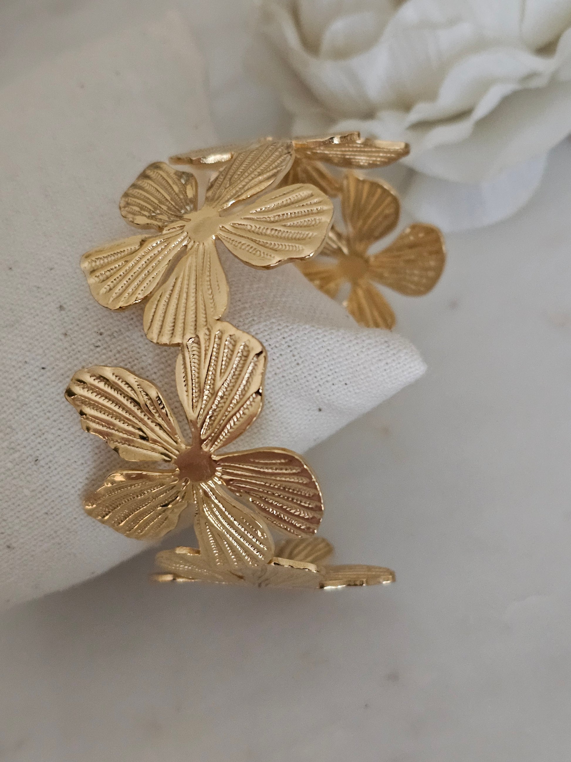 🌸 Golden Bloom Flower Cuff Bangle 🌸