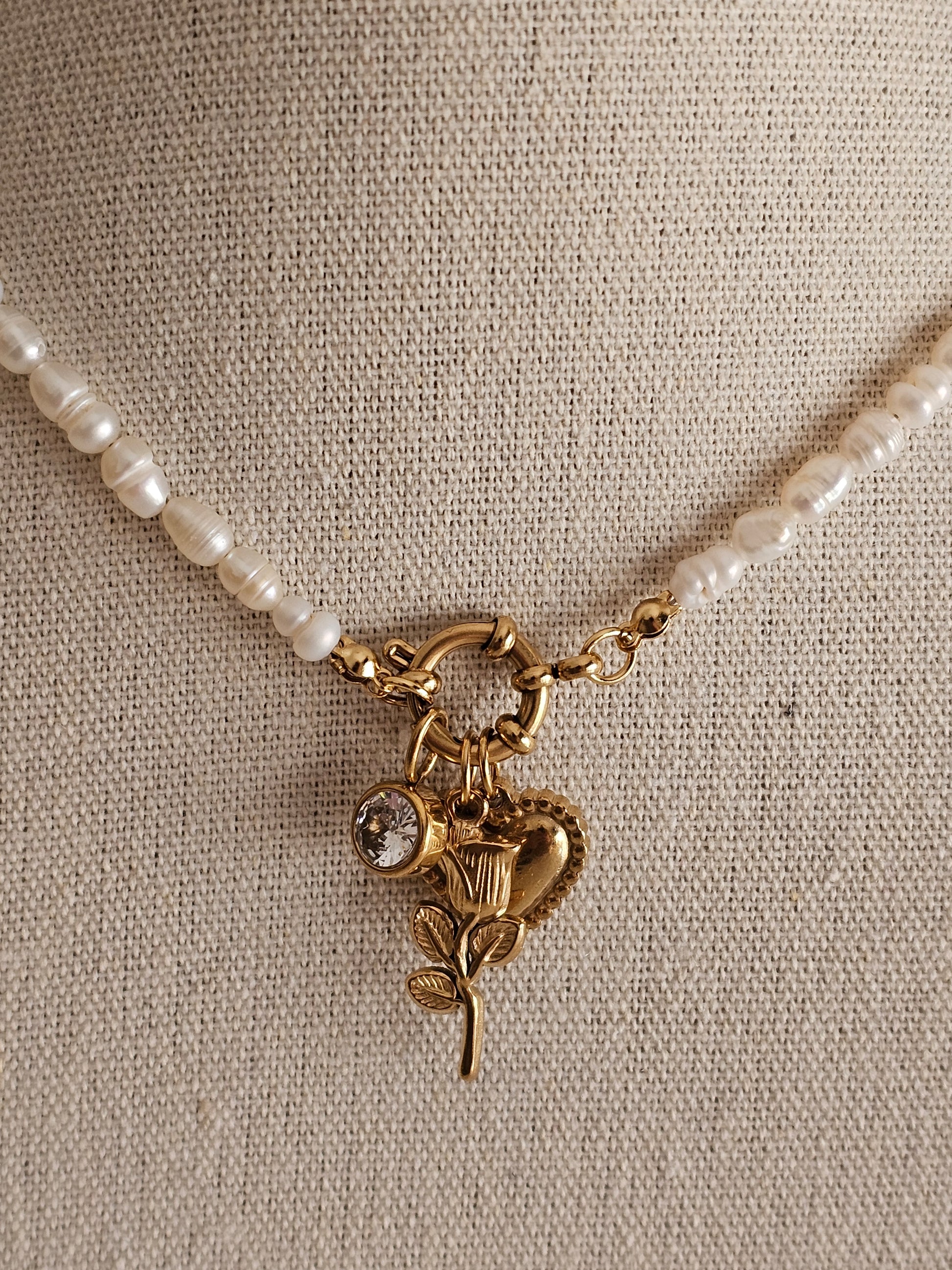 Main material: 18k gold plated, high quality stainless steel. Freshwater pearl.