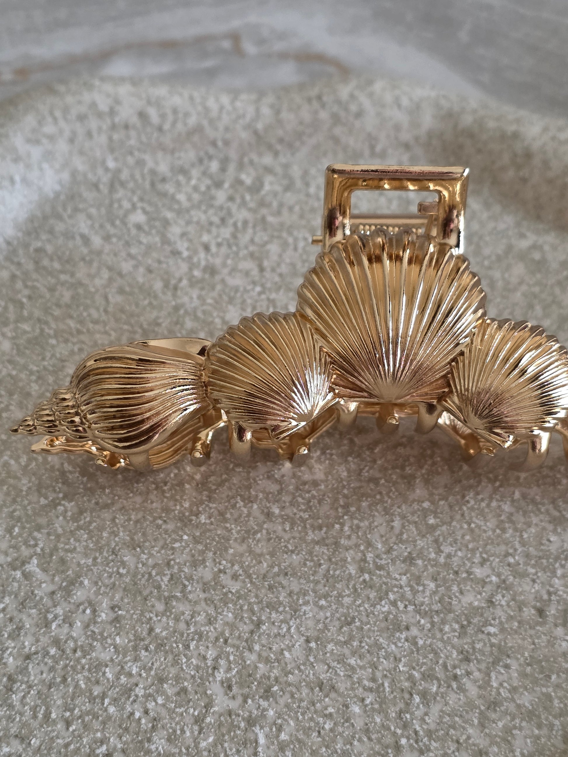 Embrace coastal elegance with our Golden Seashell Hair Claw — a statement accessory crafted in a radiant gold-tone finish. Designed with intricately detailed seashell and conch motifs, this clip brings a touch of beachside glamour to any updo. The sturdy, non-slip grip ensures your hairstyle stays secure all day long, while the rust-free material offers lasting shine and durability. Perfect for effortless styling with a luxe, ocean-inspired flair.