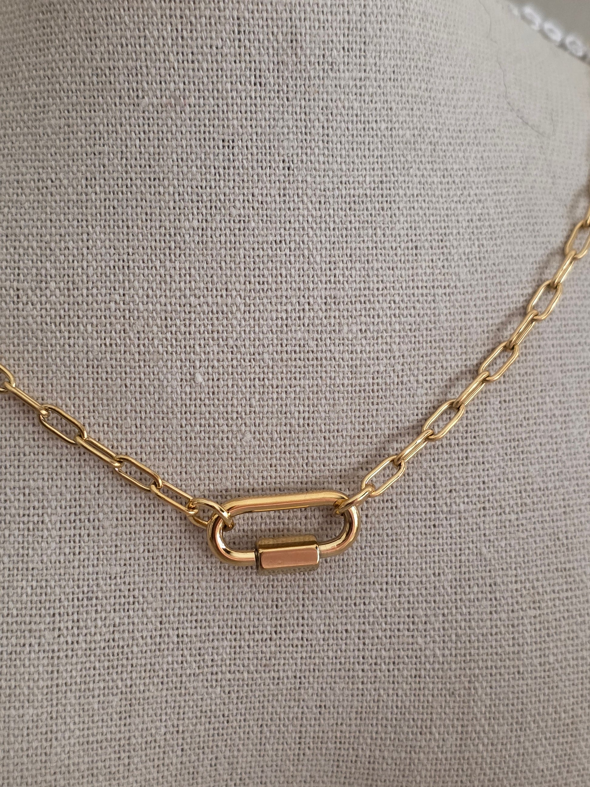 Chic and versatile, this gold-toned paperclip chain necklace features a sleek oval clasp that opens — making it easy to add your favourite charms. Whether you keep it minimal or personalize it with pendants, this piece is the perfect base for expressing your unique style.