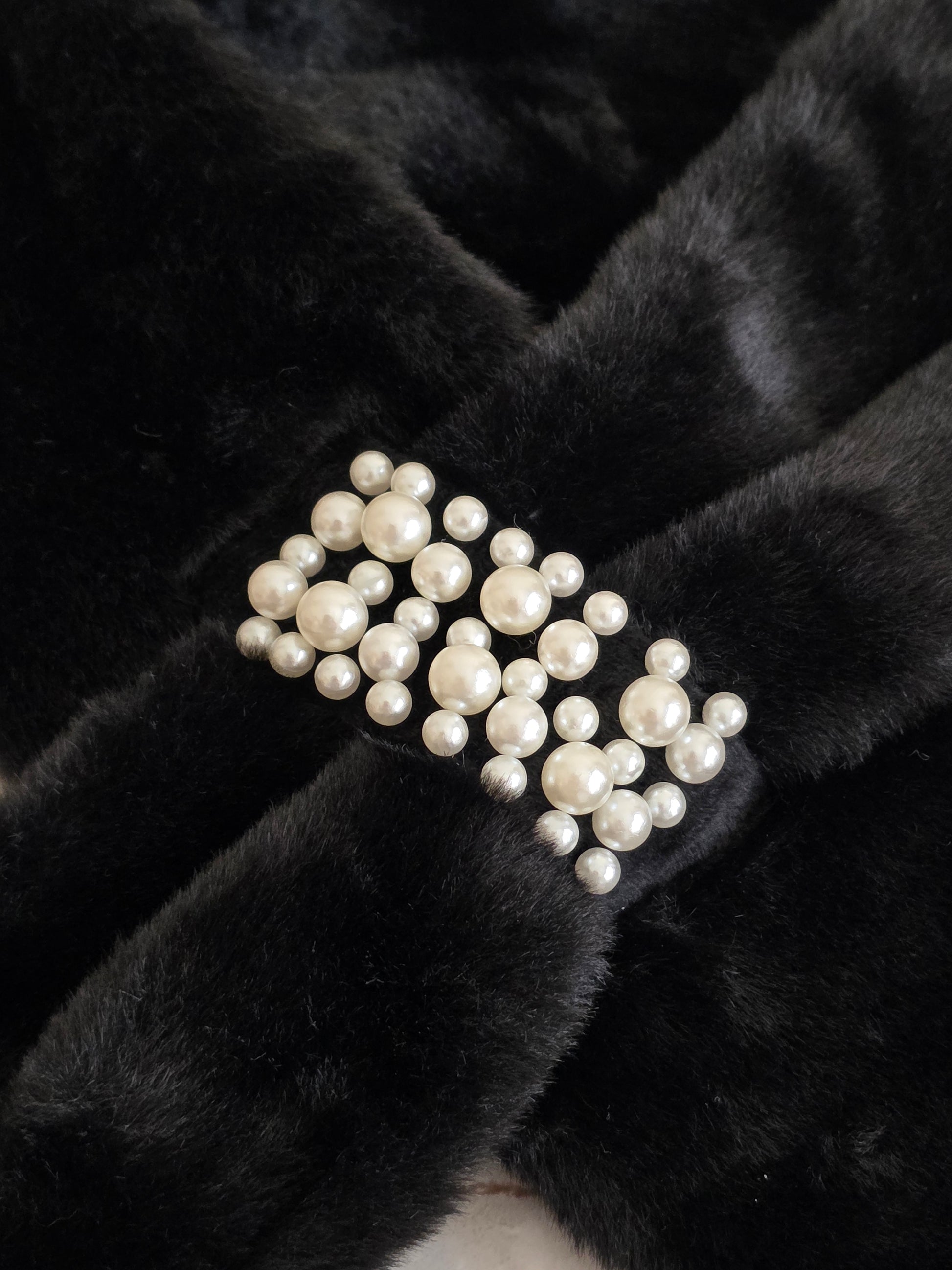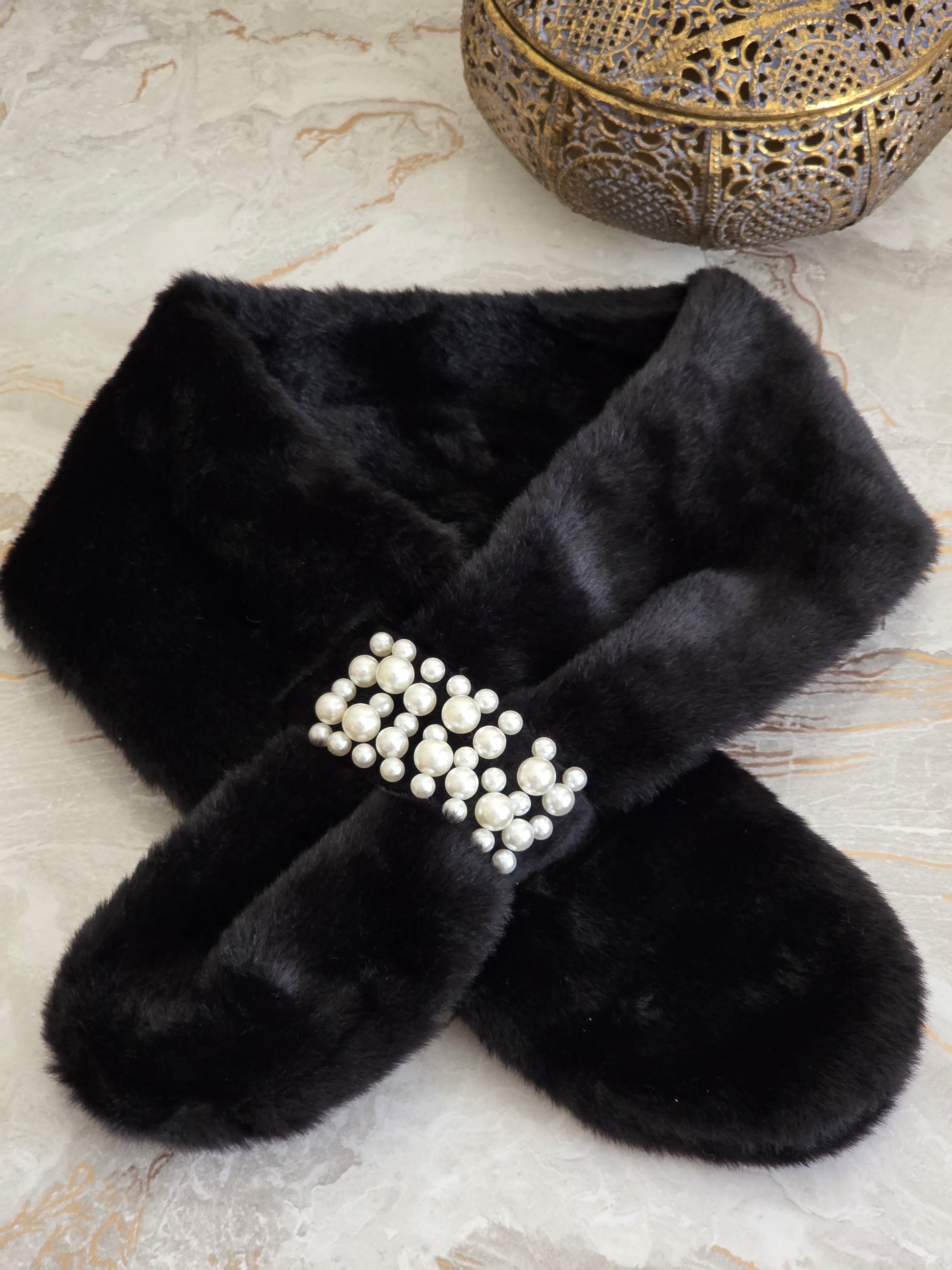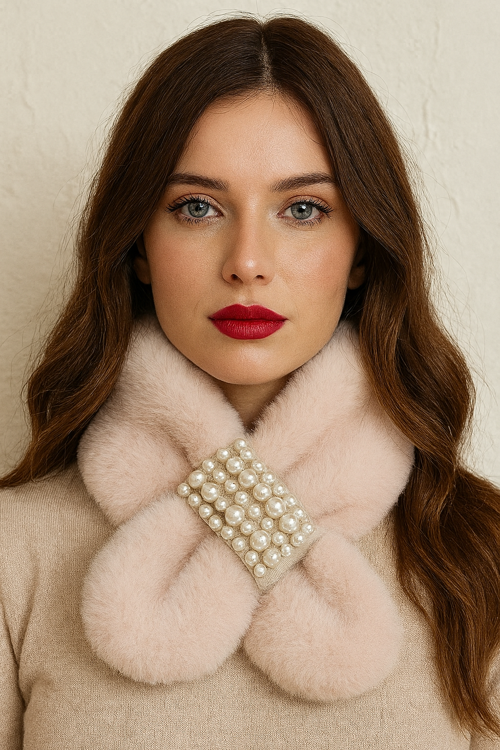 Wrap yourself in elegance and warmth with this plush faux fur neck warmer. Designed for both comfort and style, it features a chic pearl-embellished band that adds a touch of sophistication. Perfect for winter outings, special occasions, or elevating your everyday look with a hint of luxury.