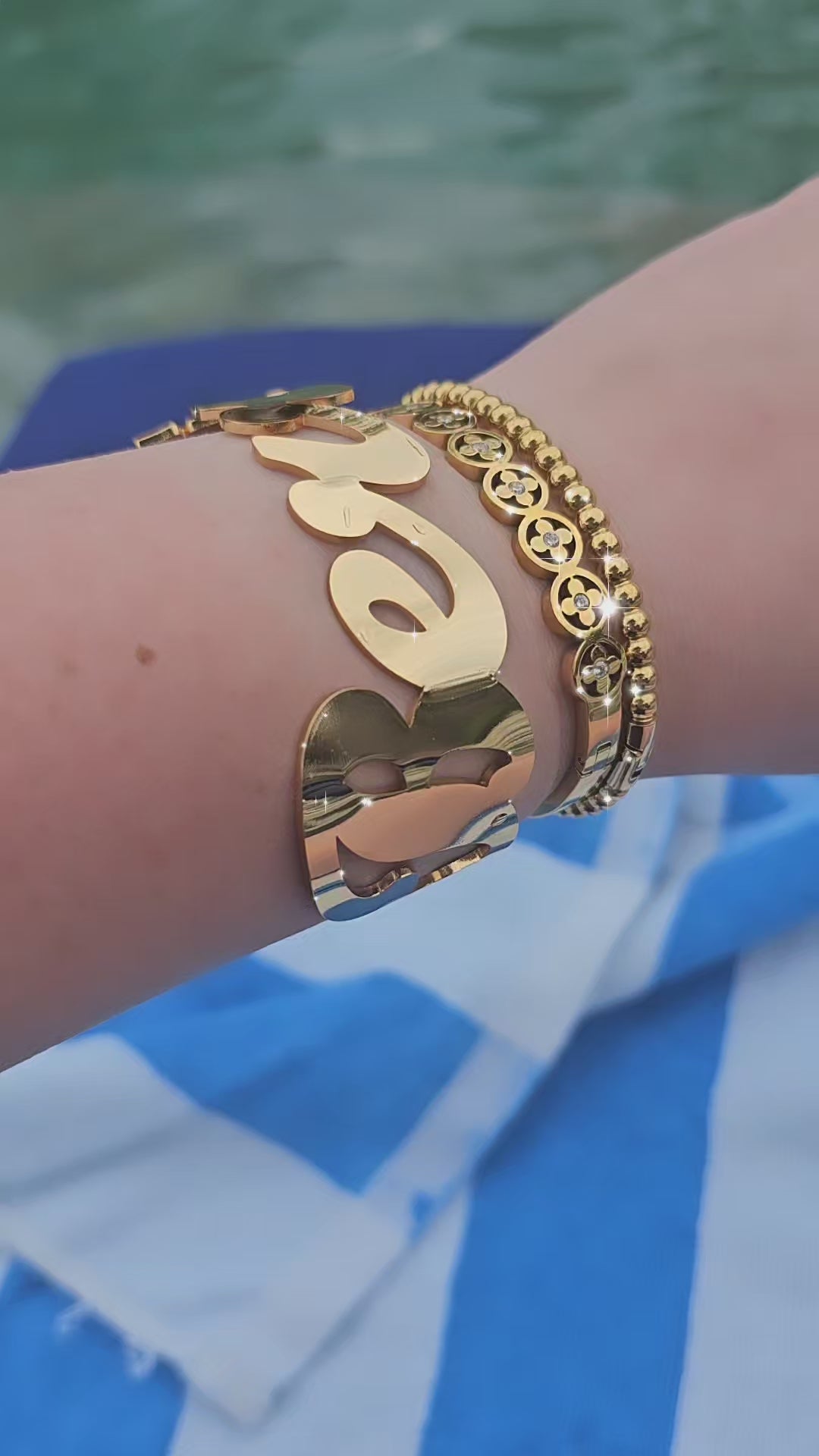 Bracelet Width: Approximately 1.5 to 3 cm wide. Adjustable to wrist.