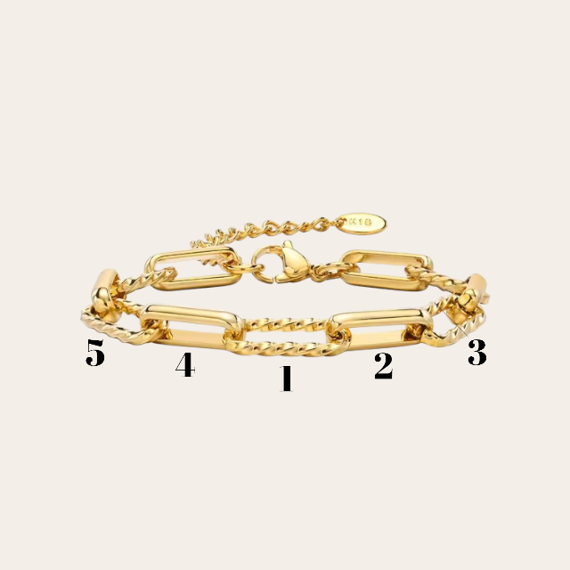 Once you have decided on your charms it's time to arrange them on your bracelet. Image 2 shows the position of the charms. Suggest you start from the center, number 1, being the biggest charm and number 3 & 5 which are on the outer edges being the smallest charm for an even look.
