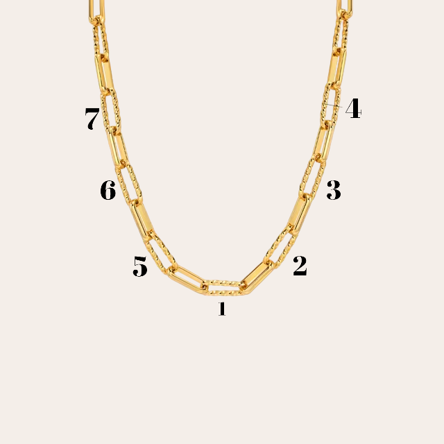 Once you have decided on your charms it's time to arrange them on your necklace. Image 2 shows the position of the charms. Suggest you start from the center, number 1, being the biggest charm and number 4 & 7 which are on the outer edges being the smallest charm for an even look.