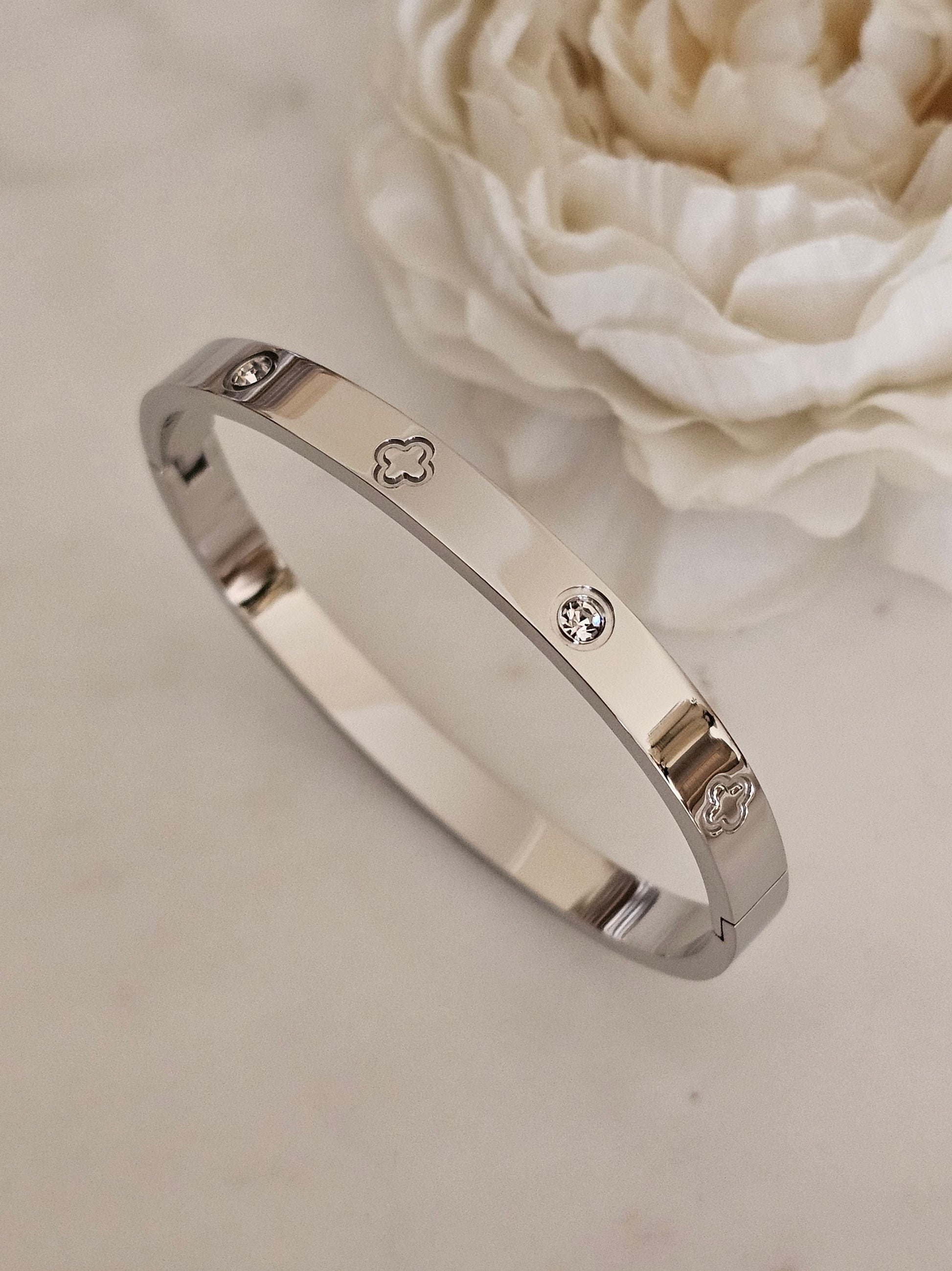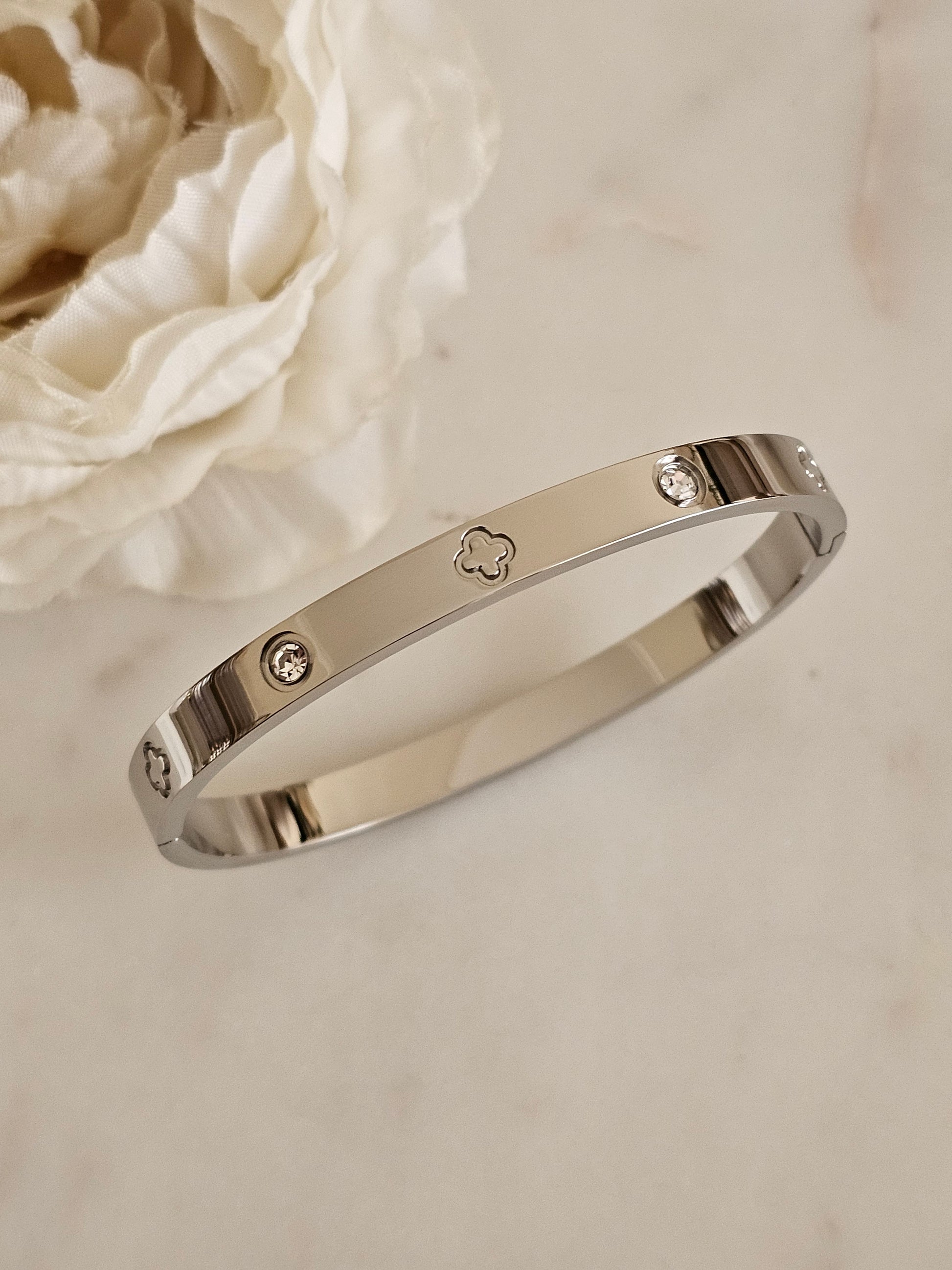 Bangle Size: Inner diameter 6 cm. Has a clasp that opens for an easy effortless fit.